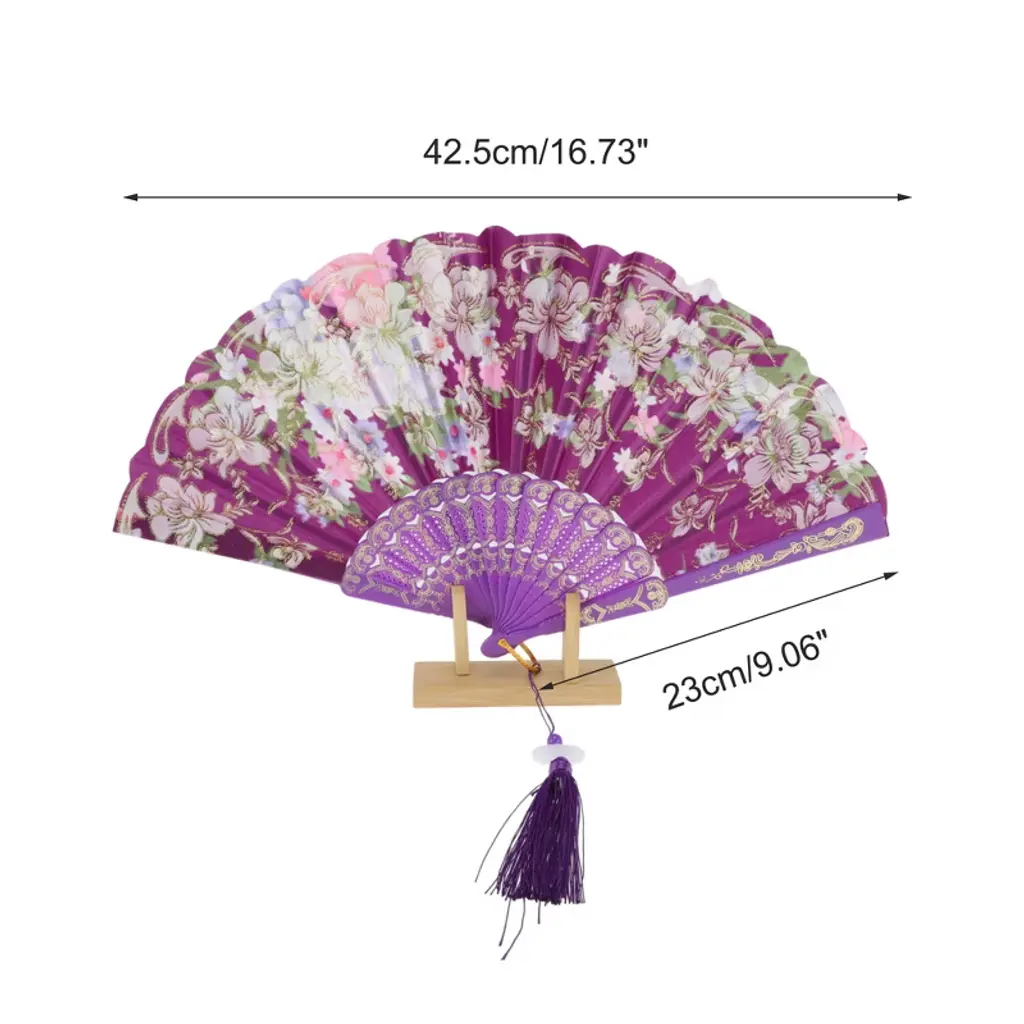 Item Function: 1. The folding fan is made of good quality silk fabric, a sturdy and durable product to give you a smooth opening and folding experience. 2. It can be drive away heat for you in scorching summer days and add a pop of color to your costume as a decoration.3. This hand fan can be widely seen at the wedding, masquerade, Halloween, dancing party or other activities, also can be applied as adornments, such as photo prop, part decoration, festival decoration, photography backdrop, clothing ornament and so on.4. These fans are great gifts for various parties, such as weddings, anniversaries, ceremonies, dancing performance. Also, it's suitable for home DIY decorating. Specifications: Product Name: Folding Fan, Material: Silk Fabric, Closed Length: 23cm / 9.06", Opened Length: 43cm / 16.93", Package List: 1 Piece Folding Fan.
