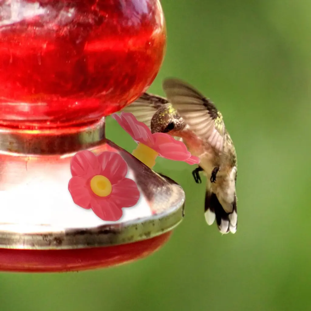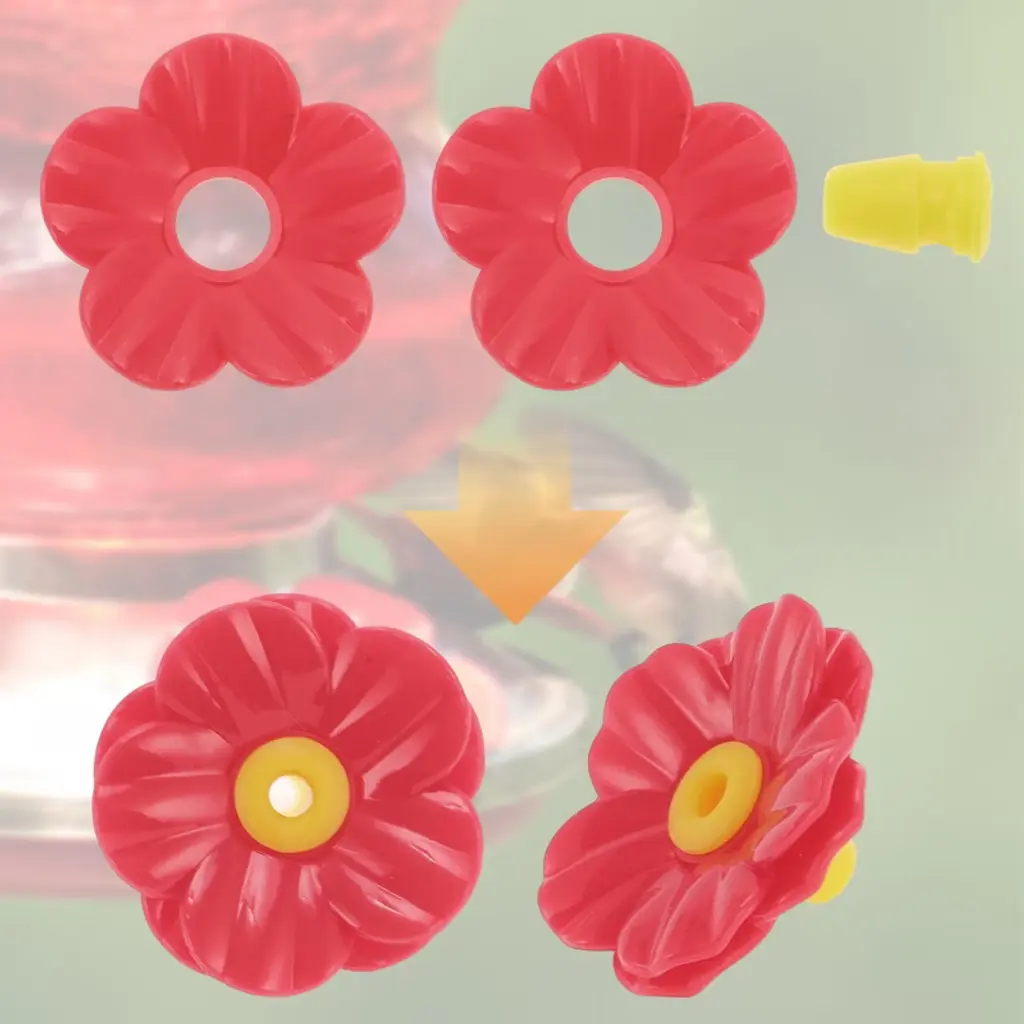 Features: Enhance your hummingbird feeder with these realistic replacement flower ports that attract hummingbirds to your garden. Crafted from durable plastic, these flower parts ensure the well-being of the birds and the longevity of your feeder. The easy-to-install design makes them suitable for most standard feeders on the market. Save money by replacing individual flowers instead of the entire feeder. These aesthetically pleasing plastic flower ports provide a compatible solution for worn-out parts, maintaining your feeder's functionality and appearance. Specifications: Color: Material: Plastic, Flower Size: 3.1x3x0.79cm/ 1.22"x1.18"x0.31"(L*W*D), Size 1: 0.9cm/ 0.35"(D), Size 2: 1.3cm/ 0.51", Size 3: 0.8cm/ 0.31", Size 4: 0.3cm/ 0.12", Size 5: 0.5cm/ 0.2", Package List:20 Pcs Hummingbird Feeder Parts, 2 Pcs Brush.