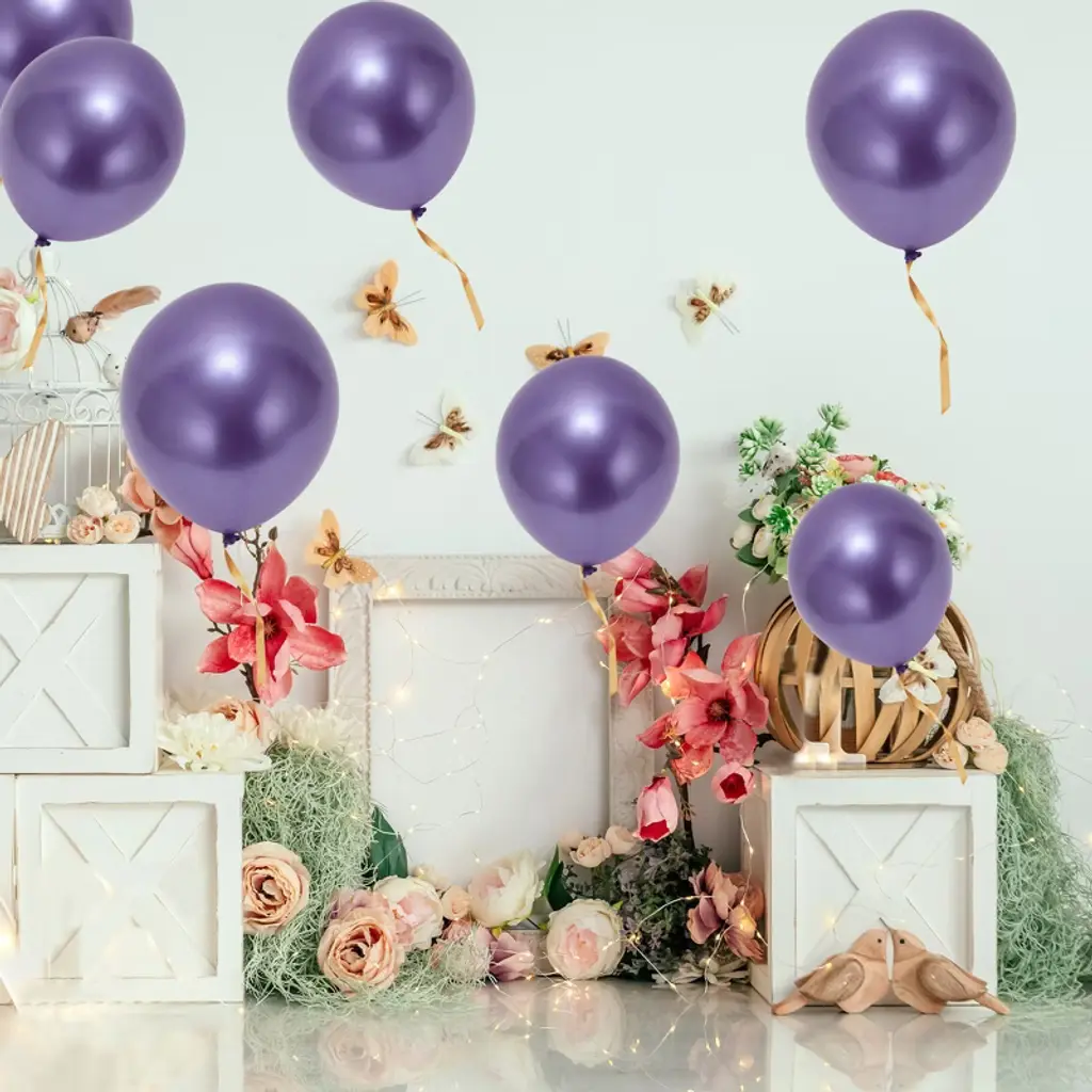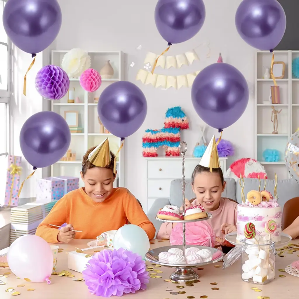 Unique Bargains Latex Party Balloons 10-inch Round Wedding Anniversary Birthday Party Backdrop Decorations 20 Pcs Metallic Purple