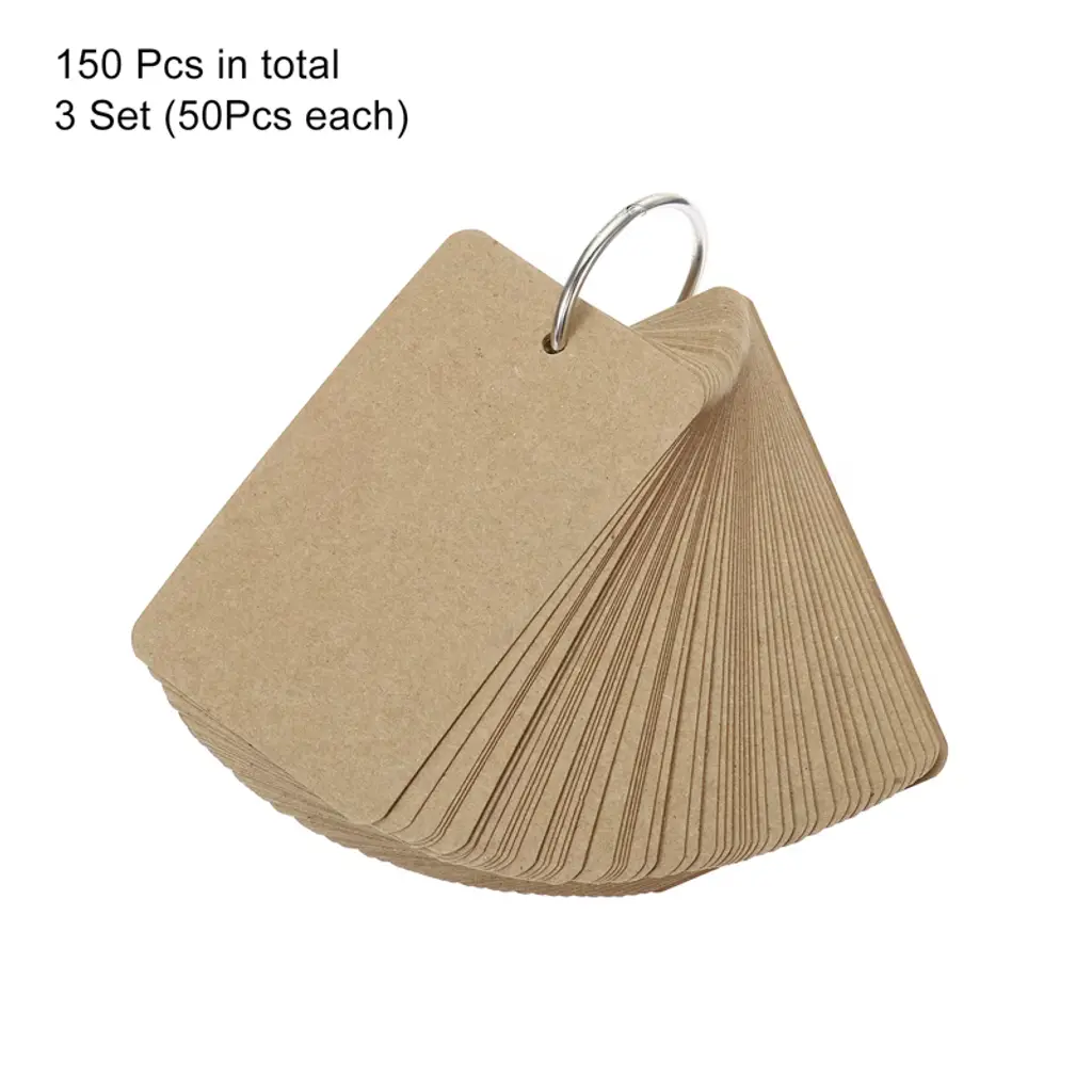 Unique Bargains Memory Learning Office Blank Index Cards With Ring 150 Pcs Brown