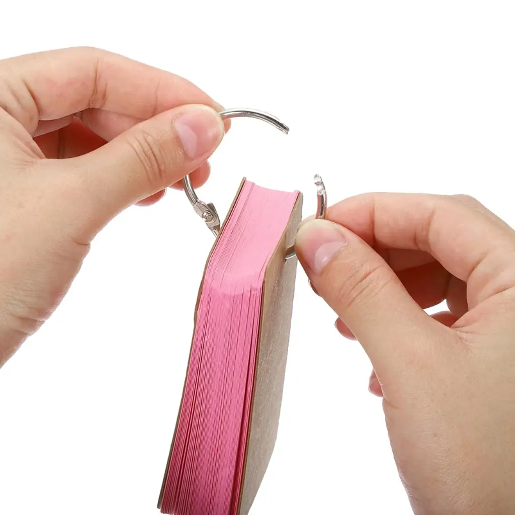 These compact cards are easy to carry around. The curved corners prevent scratches on your fingers. The included rings allow you to string the papers together for easy organization. The cardboard is thick and sturdy, suitable for use with ink pens, fountain pens, and highlighters. Instructions: Write directly on the card surface with a pen. Gently pull the rings outward from both sides, insert the rings through the holes in the paper, and press the clasp. Flashcards are great for note-taking, studying, and working; they're suitable for the office, home, or anywhere else you want to use them. Note: Please carefully check the dimensions before purchasing.
