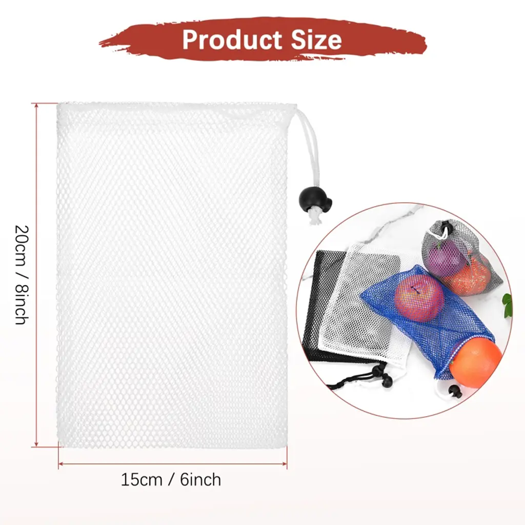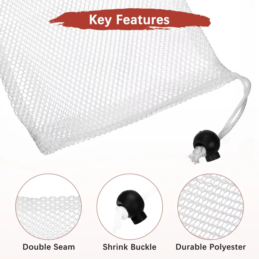 Unique Bargains Mesh Durable Polyester Drawstring Lockable Laundry Bags 6 Pcs White