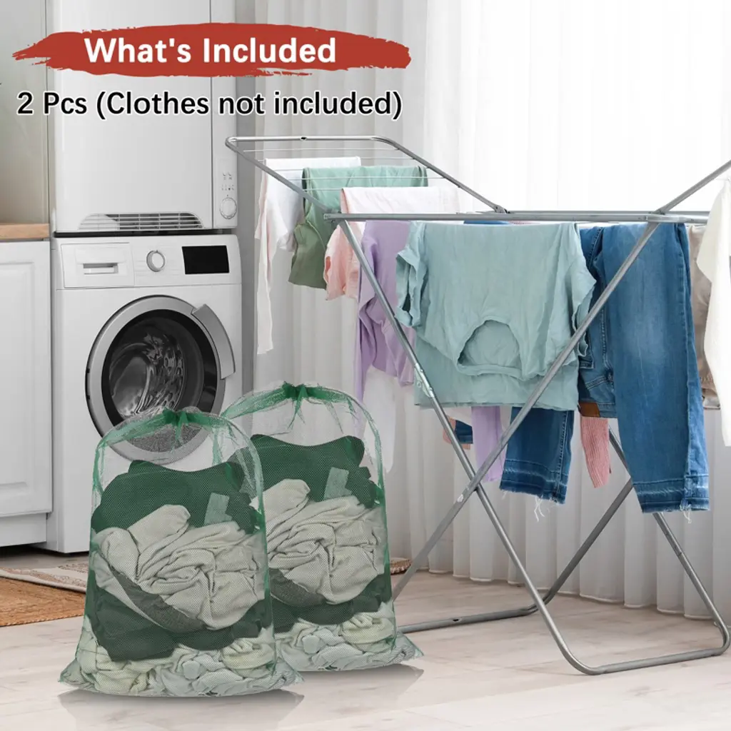 Unique Bargains Mesh Durable Washable Laundry Bag 2 Pcs Green