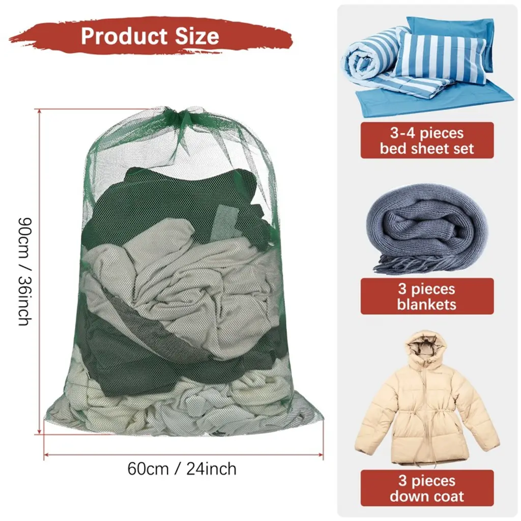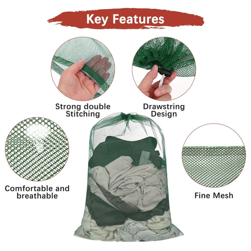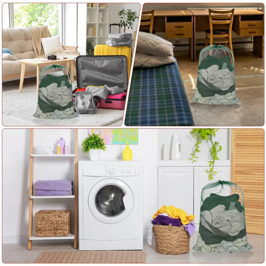 The large mesh laundry bag is a versatile essential for laundry organization, good for home use, travel, and dorm living. This washable laundry bag provides a convenient solution for separating and washing delicate garments, ensuring they stay protected during laundering. Featuring a spacious and durable design, the mesh laundry bag offers ample room to accommodate multiple items while allowing thorough water circulation for effective cleaning. The mesh material enhances visibility and breathability, while the secure drawstring closure ensures items remain enclosed and protected throughout the washing process. Place your delicate garments or small items inside the Large Mesh Laundry Bag before tossing it into the washing machine. Pull the drawstring tightly to secure the contents within the bag. After washing, remove the items from the bag and air dry or tumble dry as needed for optimal care. Avoid overloading the laundry bag to ensure proper cleaning and prevent damage to the bag or its contents. Regularly clean and air dry the bag to maintain and extend its lifespan.