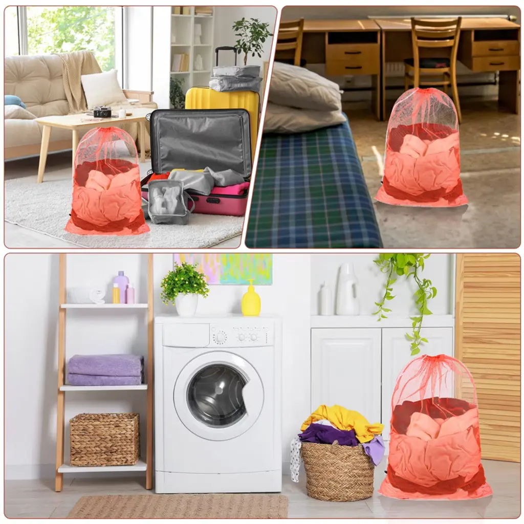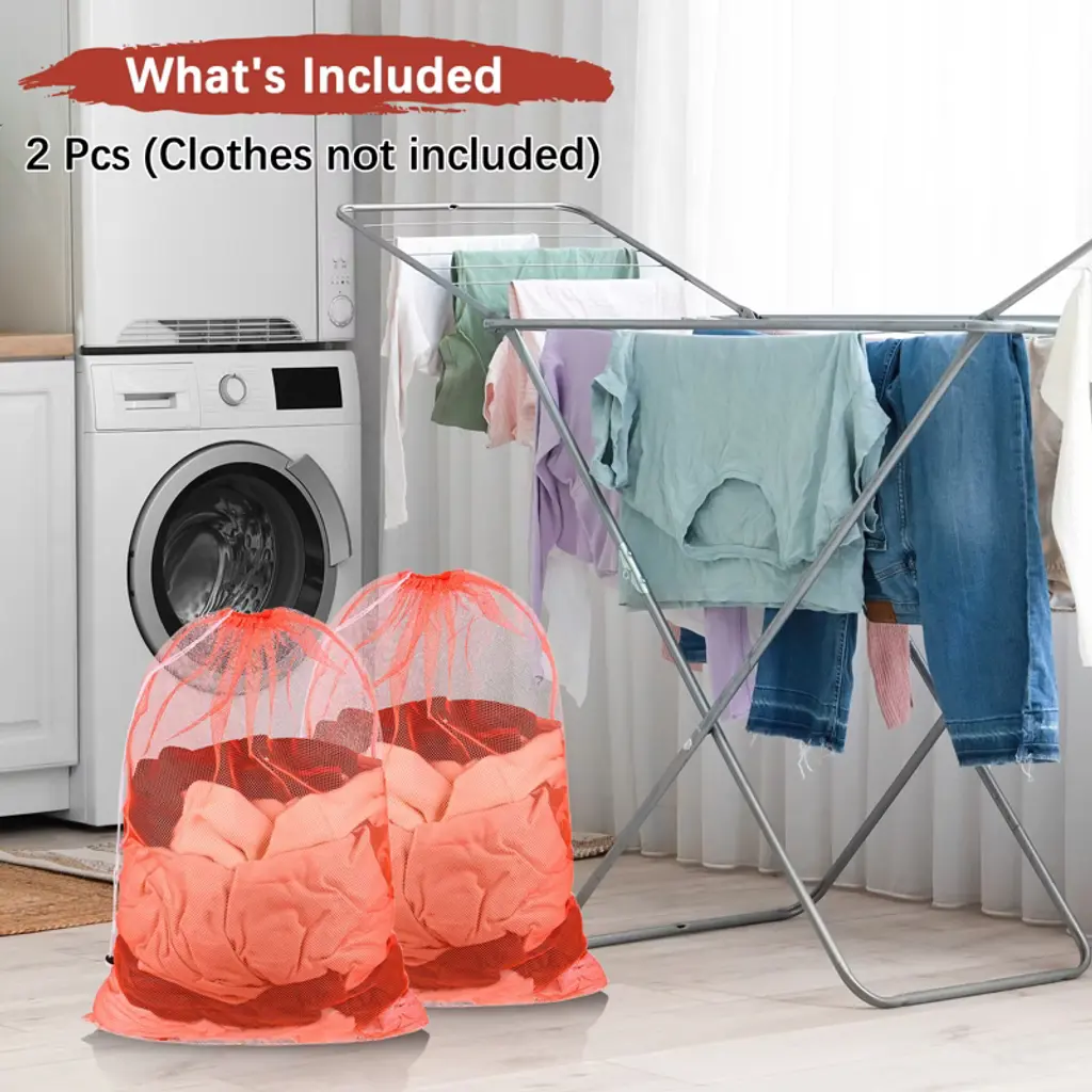 Unique Bargains Mesh Durable Washable Laundry Bag 2 Pcs Orange