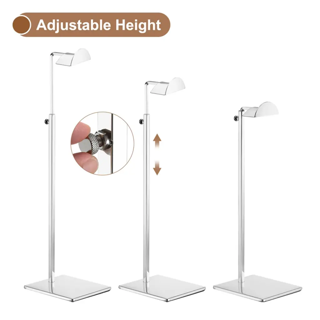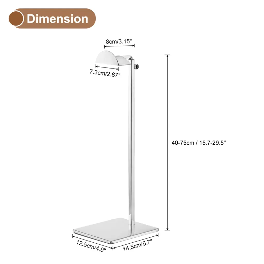This purse display stand features a polished electroplated finish, adding sophistication to any setting. Constructed from durable stainless steel, it resists rust and fading, making it ideal for holding various sizes of bags and purses, including shoulder bags, tote bags, and satchels. The adjustable height design accommodates different display needs, while the D-shaped hook ensures stability and enhances the display's appearance. A thick, weighted base provides stability, allowing it to carry more weight and hang multiple bags without tipping. The stand is versatile and suitable for displaying handbags, necklaces, and wigs at home, in retail stores, or in showrooms, showcasing your unique style.