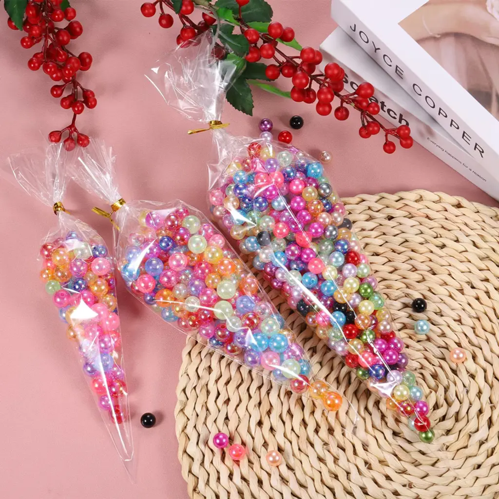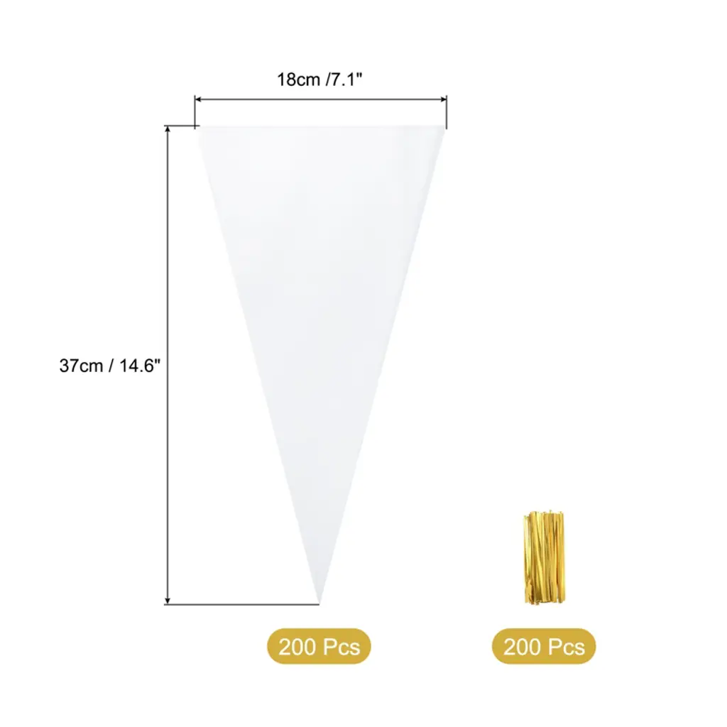 Unique Bargains Opp Material Transparent Cone Shape Treat Bags With Twist Ties 200 Pcs 7.09" X 14.57"