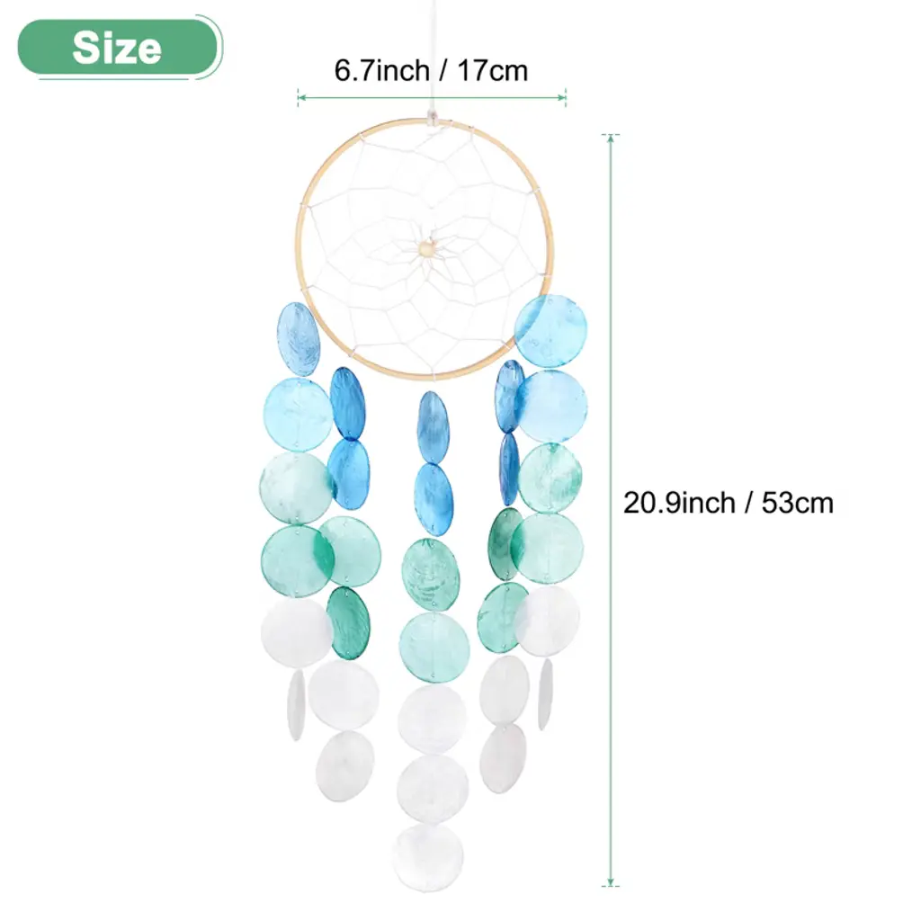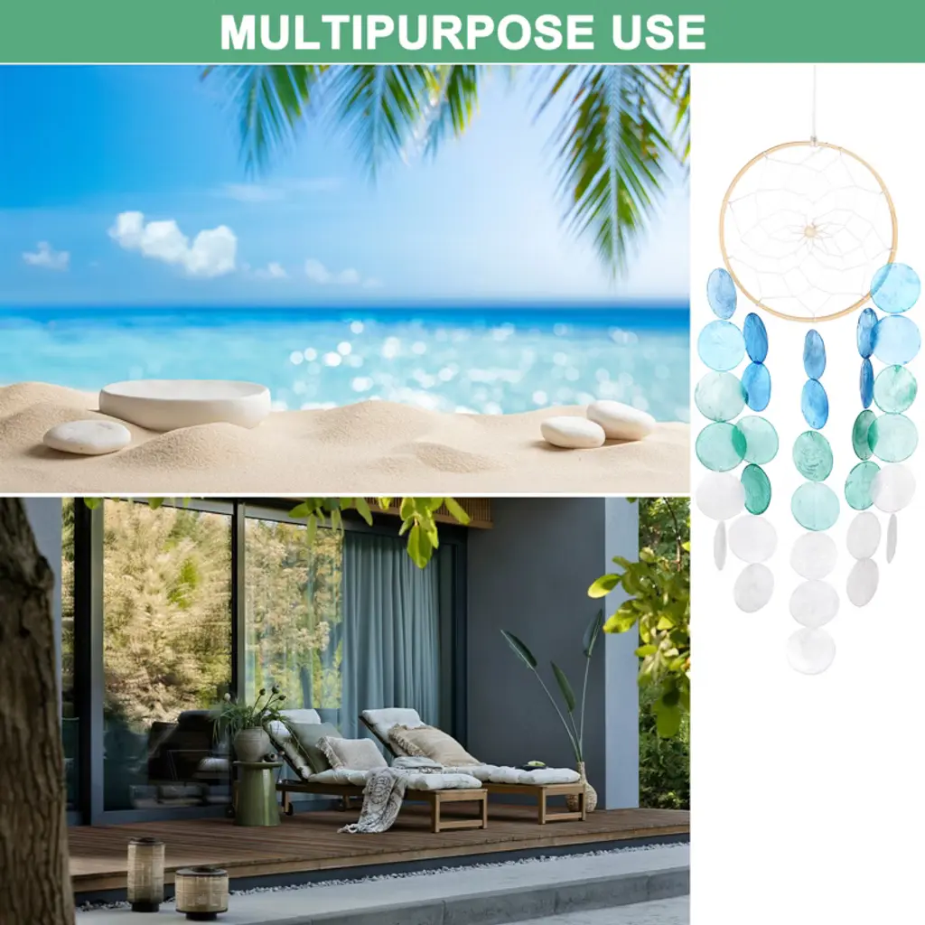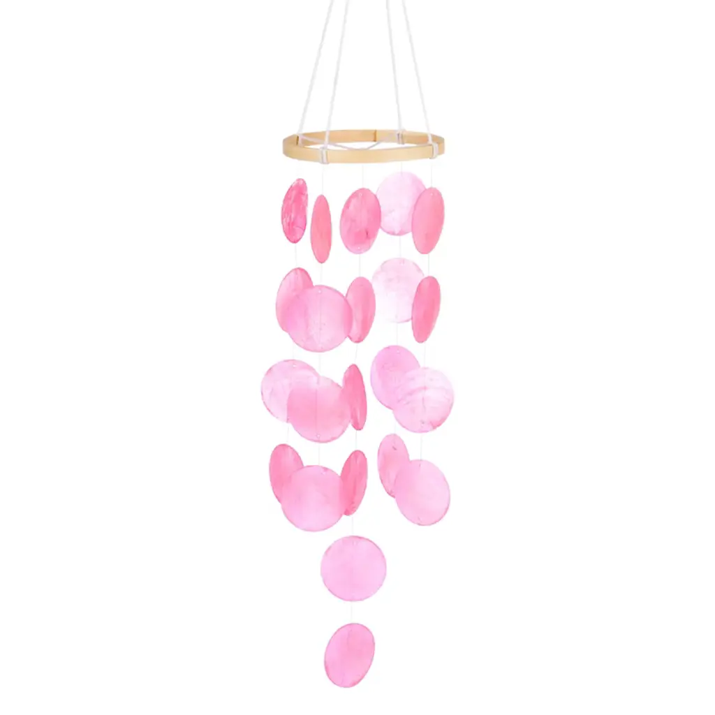 This shell wind chime is a decorative item ideal for outdoor spaces like gardens and patios. Crafted from sea shell pieces, it features durable cords and a coastal-inspired design that captures ocean beauty. The chime enhances outdoor settings by adding a calming ambiance with its soothing sounds. To enjoy the best sound, hang it where it can catch the wind easily. Regular cleaning of the shell pieces is recommended to maintain their luster and prevent debris buildup.