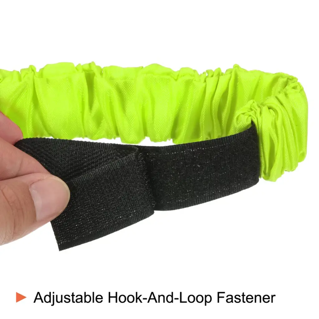 The elastic tie rope is suitable for outdoor two-person three-legged races, birthday parties, carnival games, family backyard reunions, team-building relays, etc. Strengthen cohesion train cooperation and build teamwork ability while adding fun to the gathering sports. Made of soft cotton fabric and flexible cord durable sturdy and tear-resistant. The adjustable hook-and-loop fastener is not easy to loosen or rip apart during running and hopping fits different leg sizes from small to large. Simply attach the band closure according to the size of the adjacent legs of the pair of participants bound together leaving an appropriate space. It is suggested to strap to each competitor's ankle joints and be equipped with protective gear to reduce incoordinate friction and fix the feet better