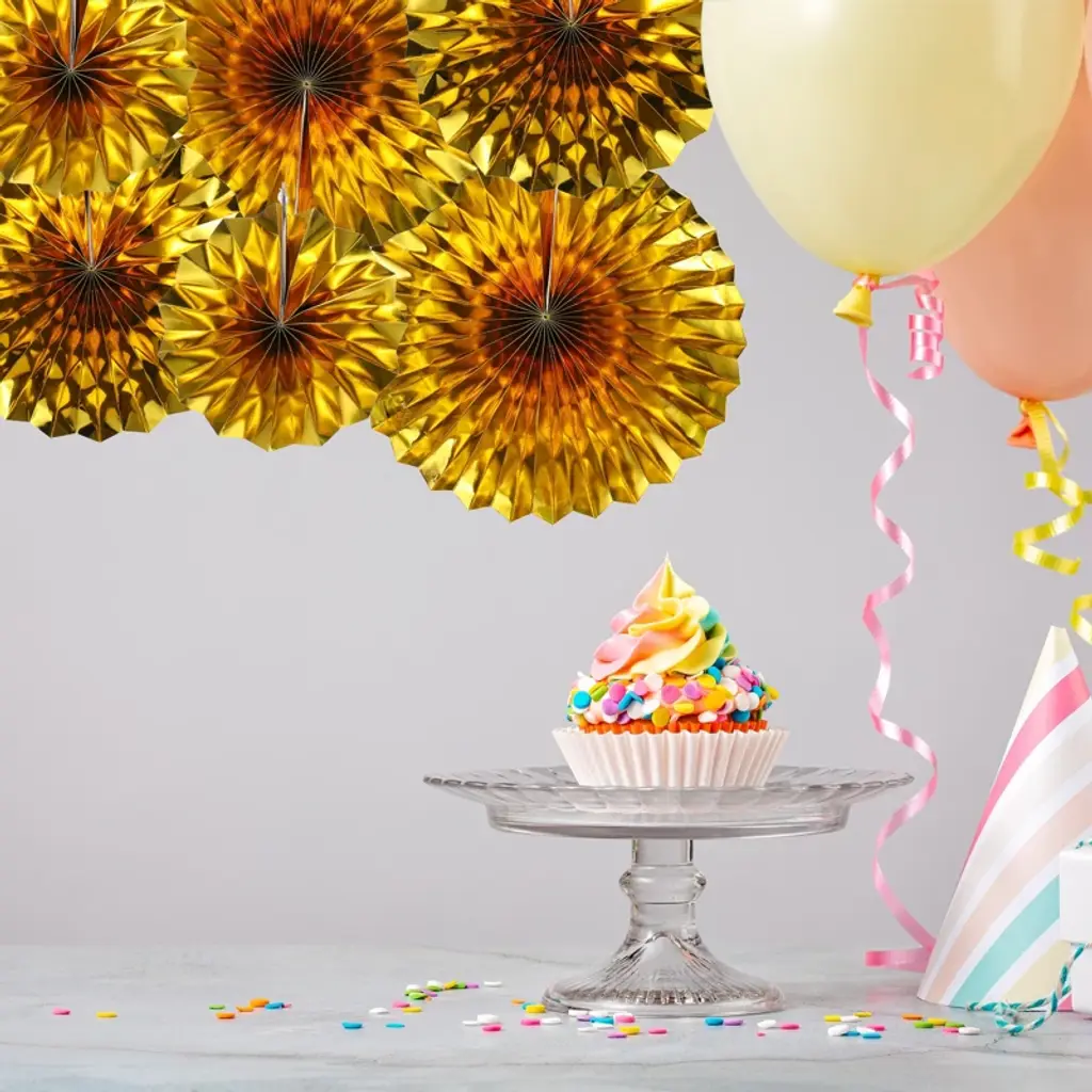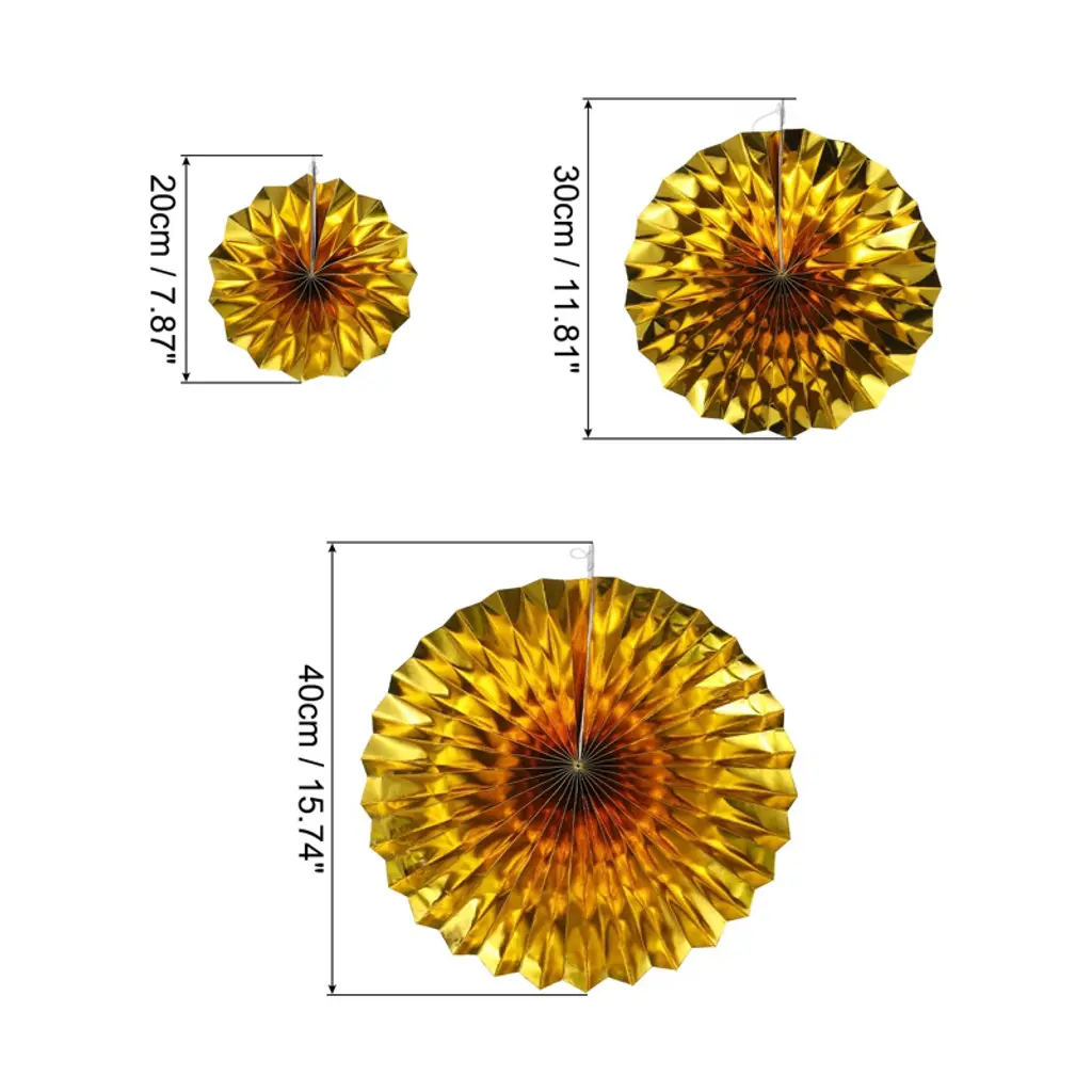 Unique Bargains Pattern Decoration Hanging Paper Fans Party Set 6 Pcs Gold