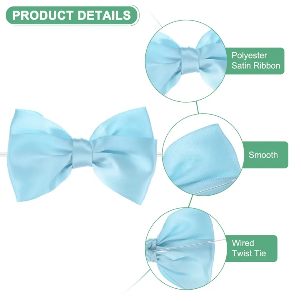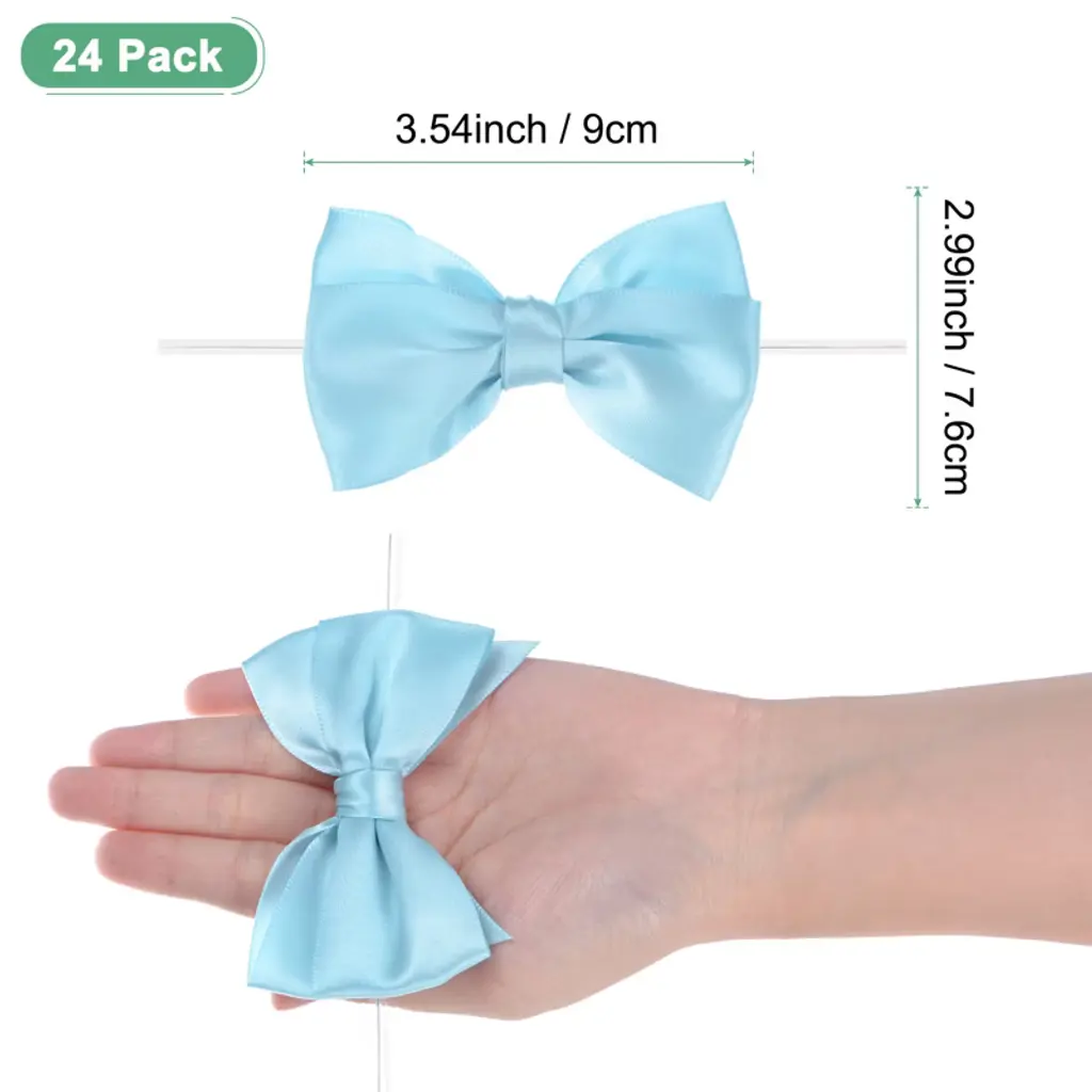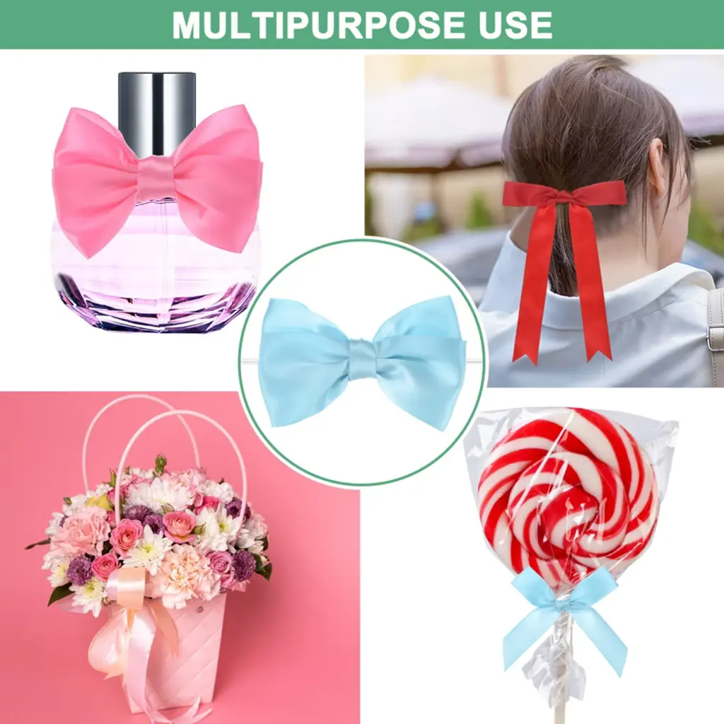 These satin ribbon bows with twist ties are versatile and perfect for various uses. Ideal for hemming and decorating handcrafts, gift bags, bakery candy bags, and present boxes, they can also be used for sleeping bags, tents, and clothing. Made from polyester, these bows offer a fine texture, are resistant to fading and wrinkles, and are flexible to the touch. Their classic and fashionable design makes them suitable for hair accessories, Christmas gifts, baking decorations, gift box packaging, hotel decorations, wedding decorations, flower packaging, and birthday arrangements. Choose a color that matches your project or gift wrapping paper, and secure the bows with twist ties or glue to desired surfaces like gift boxes, cards, or crafts. Adjust the position as needed to achieve the perfect look.