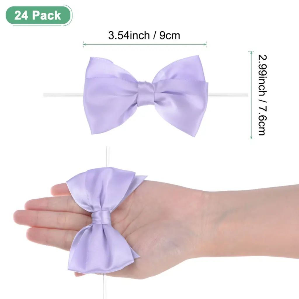 Unique Bargains Polyester Craft Diy Decorative Ribbon Twist Tie Bows 2.4x2.8" 24 Pcs Light Purple