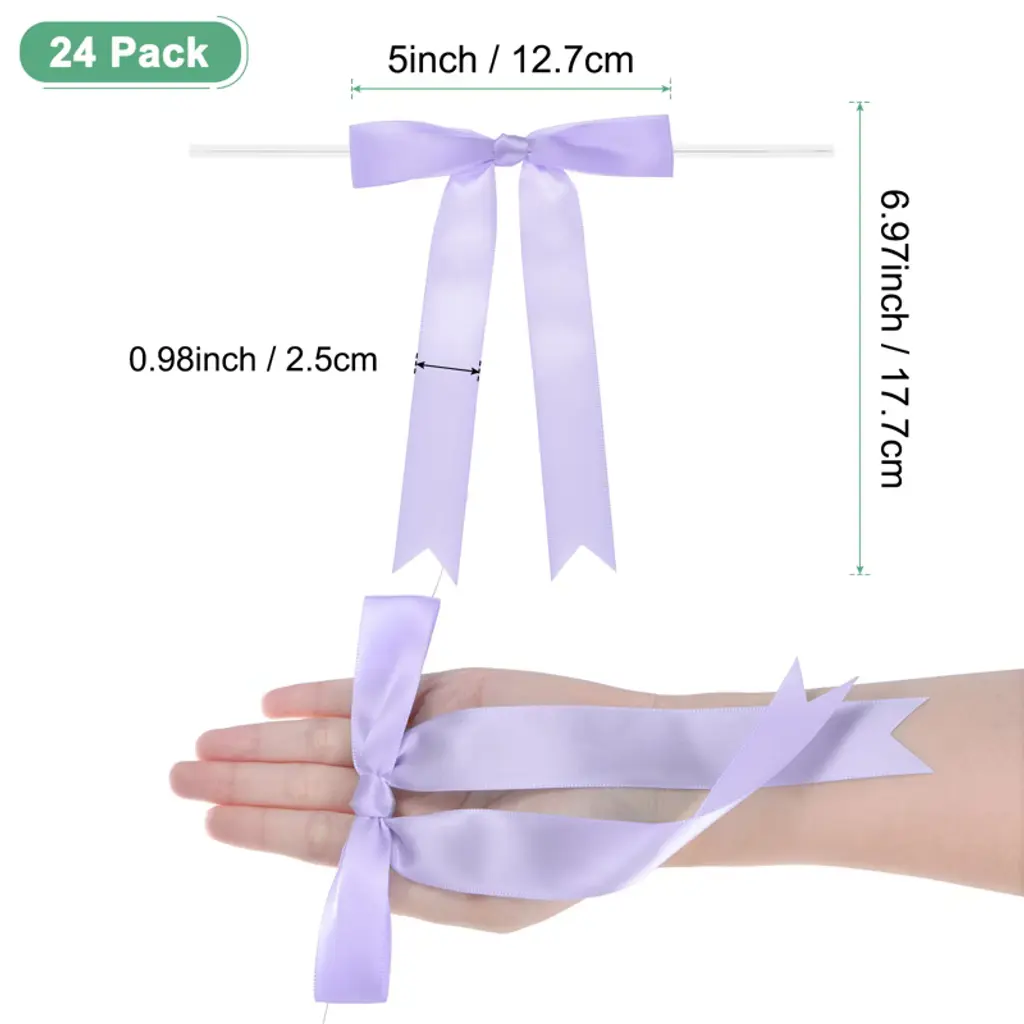 Unique Bargains Polyester Craft Diy Decorative Ribbon Twist Tie Bows 7X5" 24 Pcs Light Purple