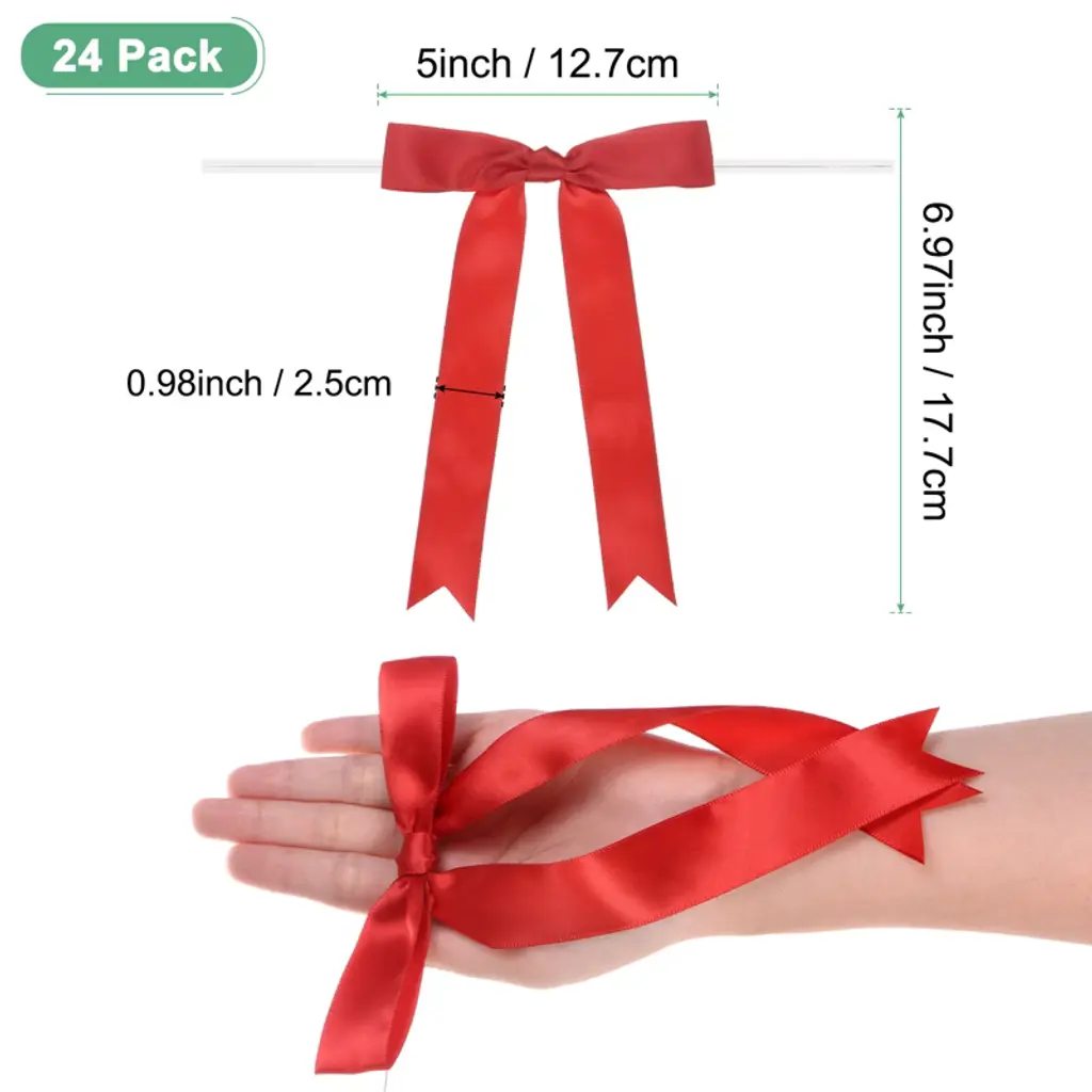 Unique Bargains Polyester Craft Diy Decorative Ribbon Twist Tie Bows 7X5" 24 Pcs Red
