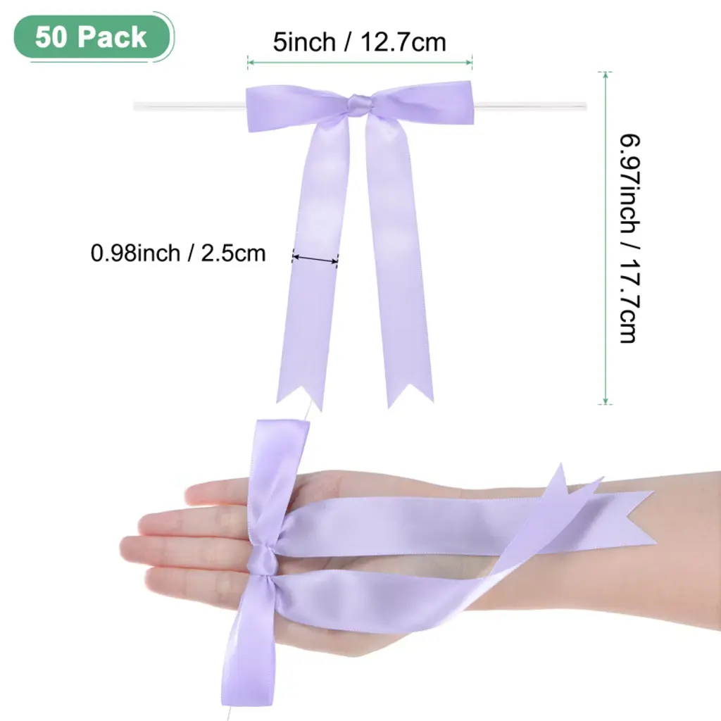 Unique Bargains Polyester Craft Diy Decorative Ribbon Twist Tie Bows 7X5" 50 Pcs Light Purple