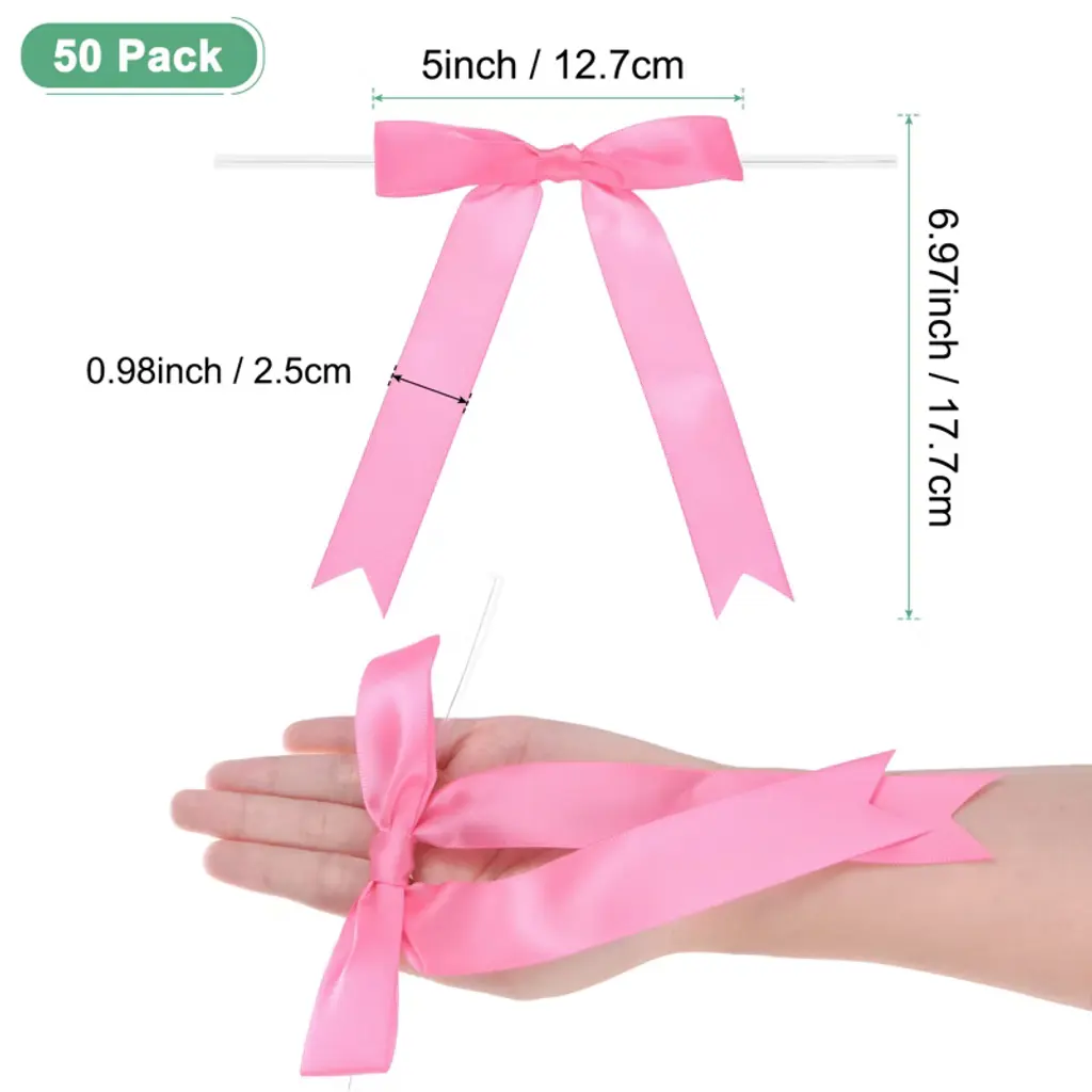 Unique Bargains Polyester Craft Diy Decorative Ribbon Twist Tie Bows 7X5" 50 Pcs Pink