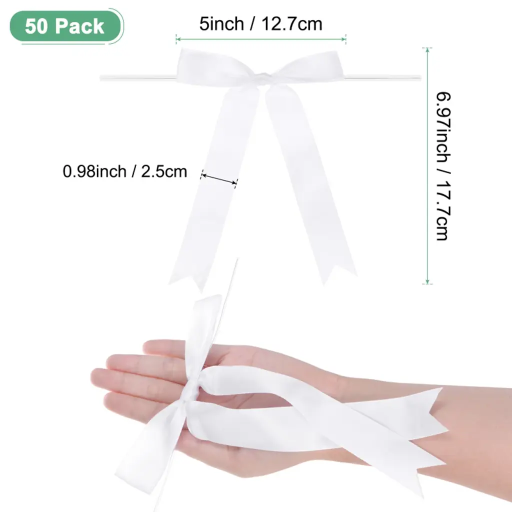 Unique Bargains Polyester Craft Diy Decorative Ribbon Twist Tie Bows 7X5" 50 Pcs White