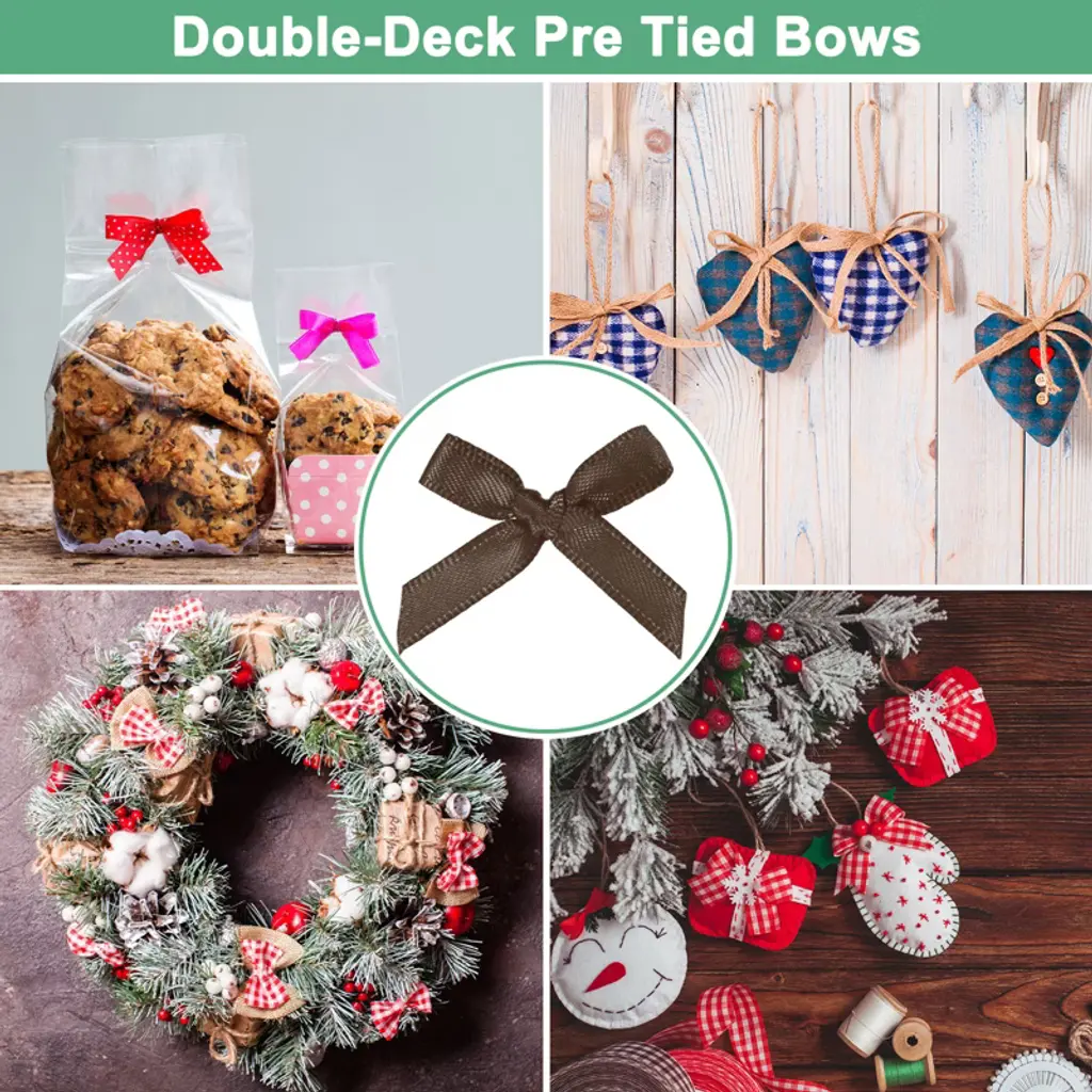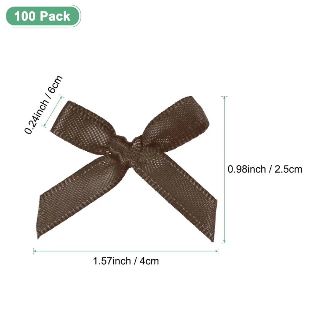 Unique Bargains Polyester Craft Durable Satin Ribbon Bow 1.6x1 Inch 100 Pcs Coffee