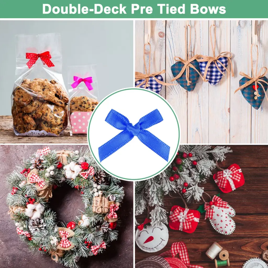 Unique Bargains Polyester Craft Durable Satin Ribbon Bow 1.6x1 Inch 100 Pcs Dark Blue