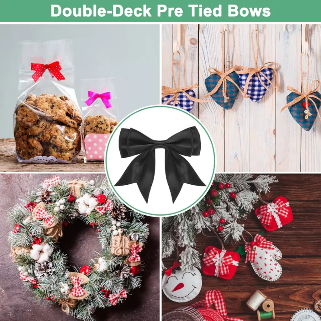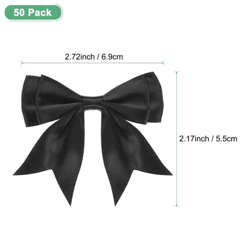 Unique Bargains Polyester Durable Craft Decorative Gift Double-deck Pre-tied Bows 3.6x2.2 Inch 50 Pcs Black