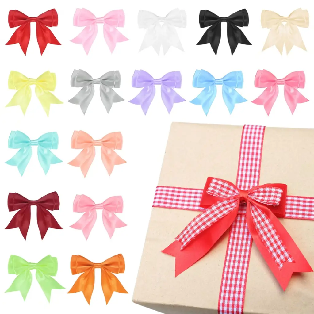 These ribbon bows are versatile and can be used for a variety of applications, including hemming and decorating leather goods, gift wrapping, Christmas tree decoration, wedding party favors, card making, and more. Made from polyester, they offer a fine texture and are smooth, wrinkle-resistant, and flexible to the touch. The classic design makes them suitable for many occasions, such as hair accessories, clothing, Christmas gifts, baking decorations, and gift box packaging. They are bright in color and fashionable, adding a new dimension to your projects. To install, choose a matching color and secure the bows to surfaces like gift boxes or crafts using twist ties or glue, adjusting as needed for the desired look.