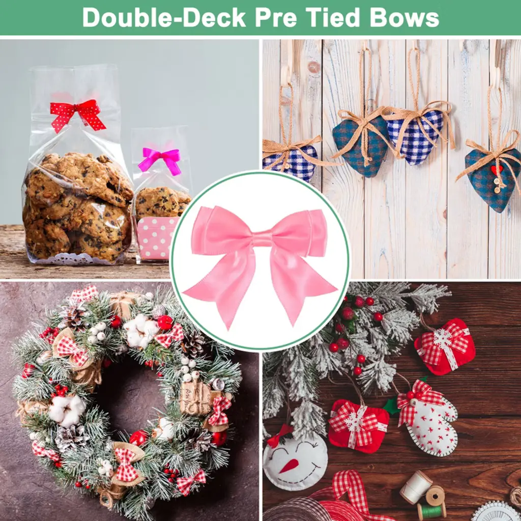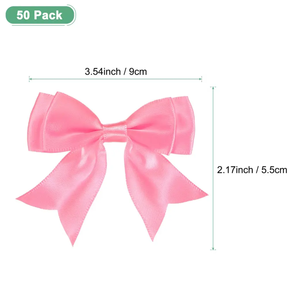 Unique Bargains Polyester Durable Craft Decorative Gift Double-deck Pre-tied Bows 3.6x2.2 Inch 50 Pcs Dark Pink