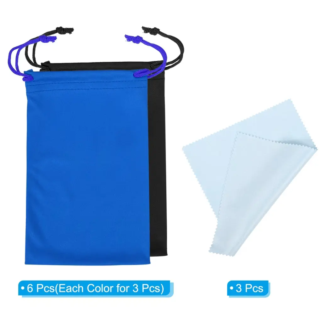 Unique Bargains Protective Storage Pouch Draw String With Cleaning Cloths 6 Pcs 11" X 7" Black /Blue