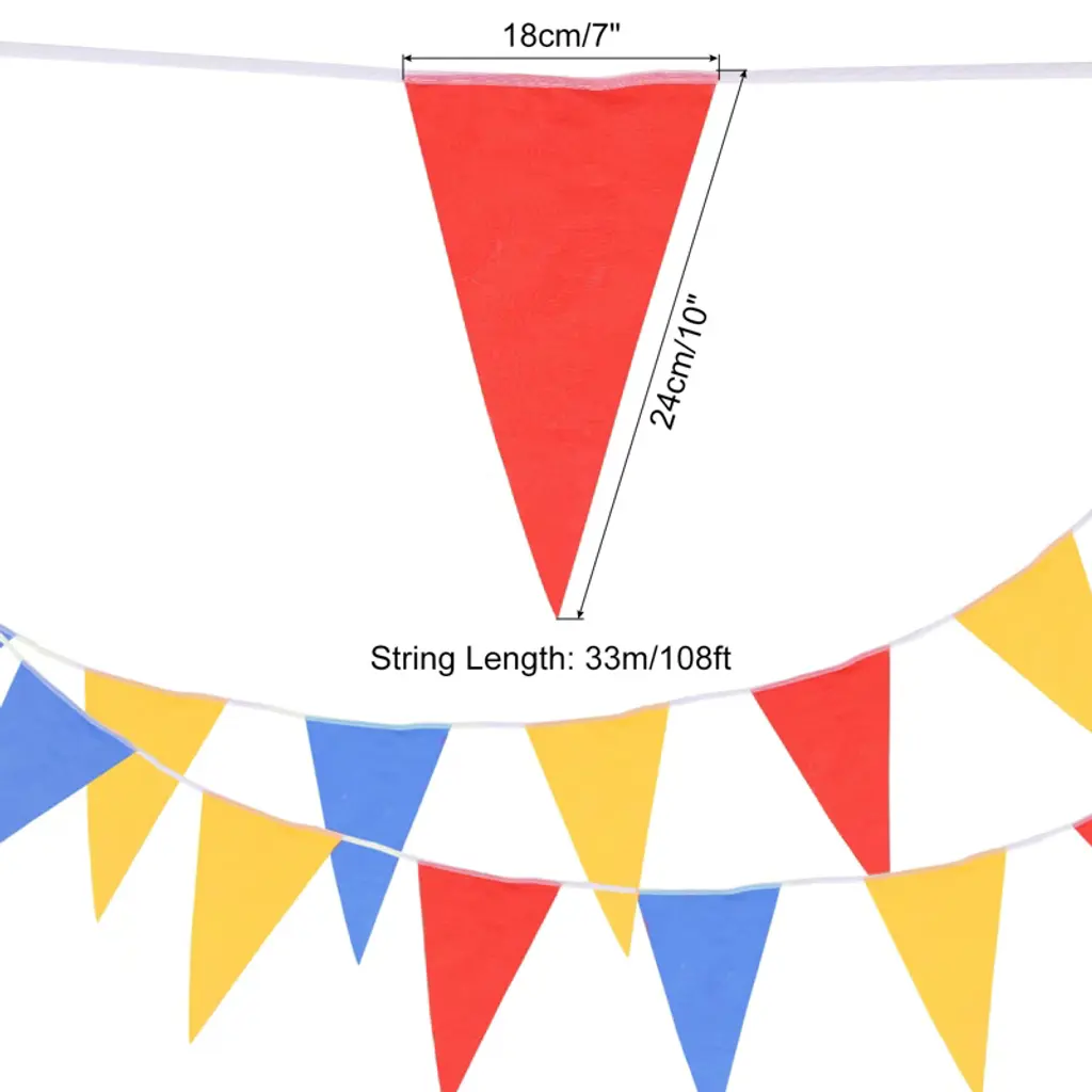 Unique Bargains Reusable Triangle Bunting Flags For Outdoor Party 108ft Red Blue Yellow 64 Pcs