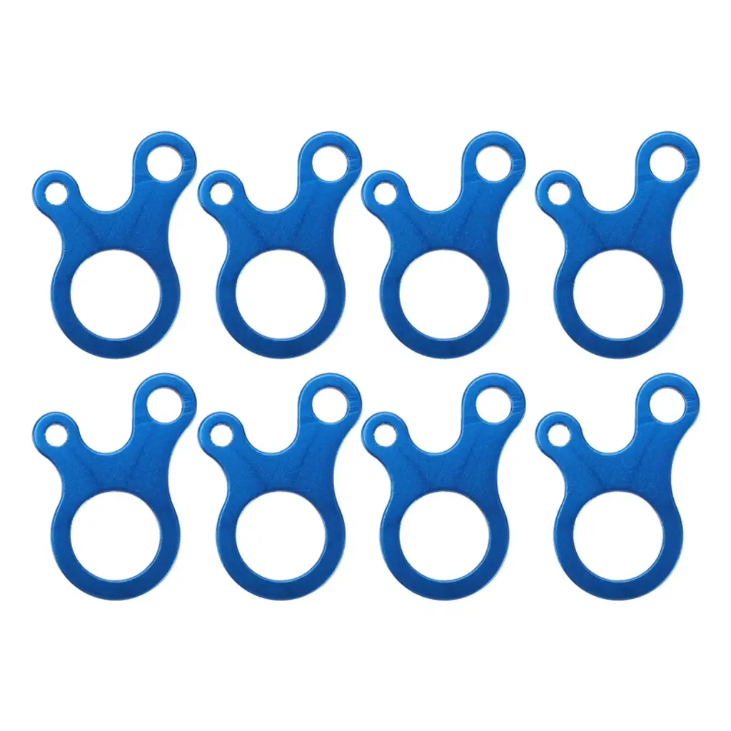 What is this? The rope tensioner is used for adjusting the rope, preventing the rope from slipping and fixing the rope. Widely used in various places, such as beach, sand, lawn, soil, etc. for fixing your tent, sleeping bag, picnic mat, backpack, objects. Suitable for camping, hiking and outdoor travel activities. What will I get? Color: Red. Material: Aluminum Alloy. Hole Diameter: 8mm / 0.31". Size: 27mmx30mmx12mm / 1.06"x1.18"x0.47"(OD*ID*H). Package Content: 6/7 x Rope Tensioner. Are there any advantages of the product? Made of aluminum alloy, lightweight and easy to carry. Anti-rust and corrosion-resistant. Bright color so it is highly visible and not easy to fade, and the three-hole design ensures a firm grip on the rope. The rope length can be adjusted as required. How to use it? Pass the rope through the two adjacent holes from the inside of the ring. After that, thread into the other hole of the ring from the outside and tie a knot.