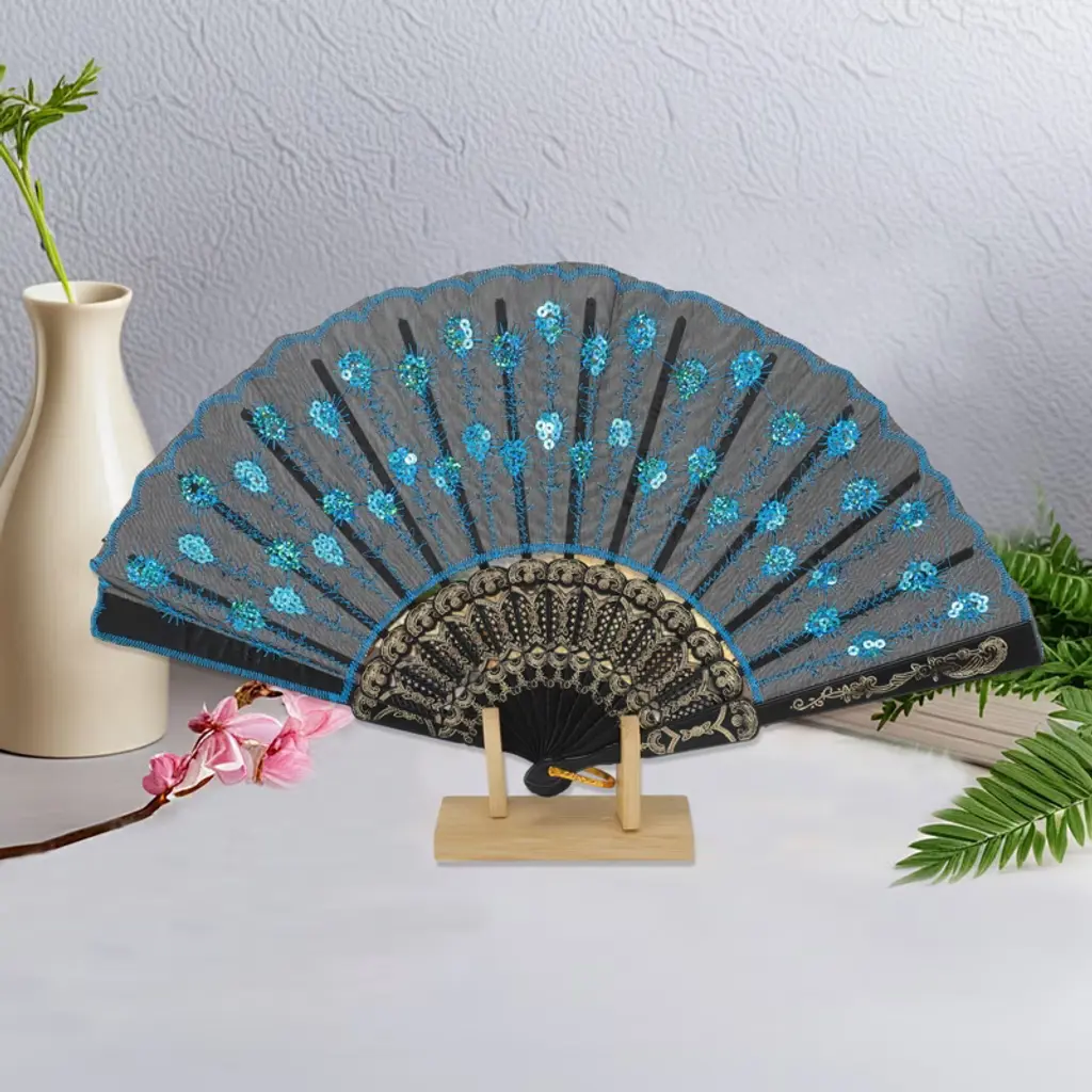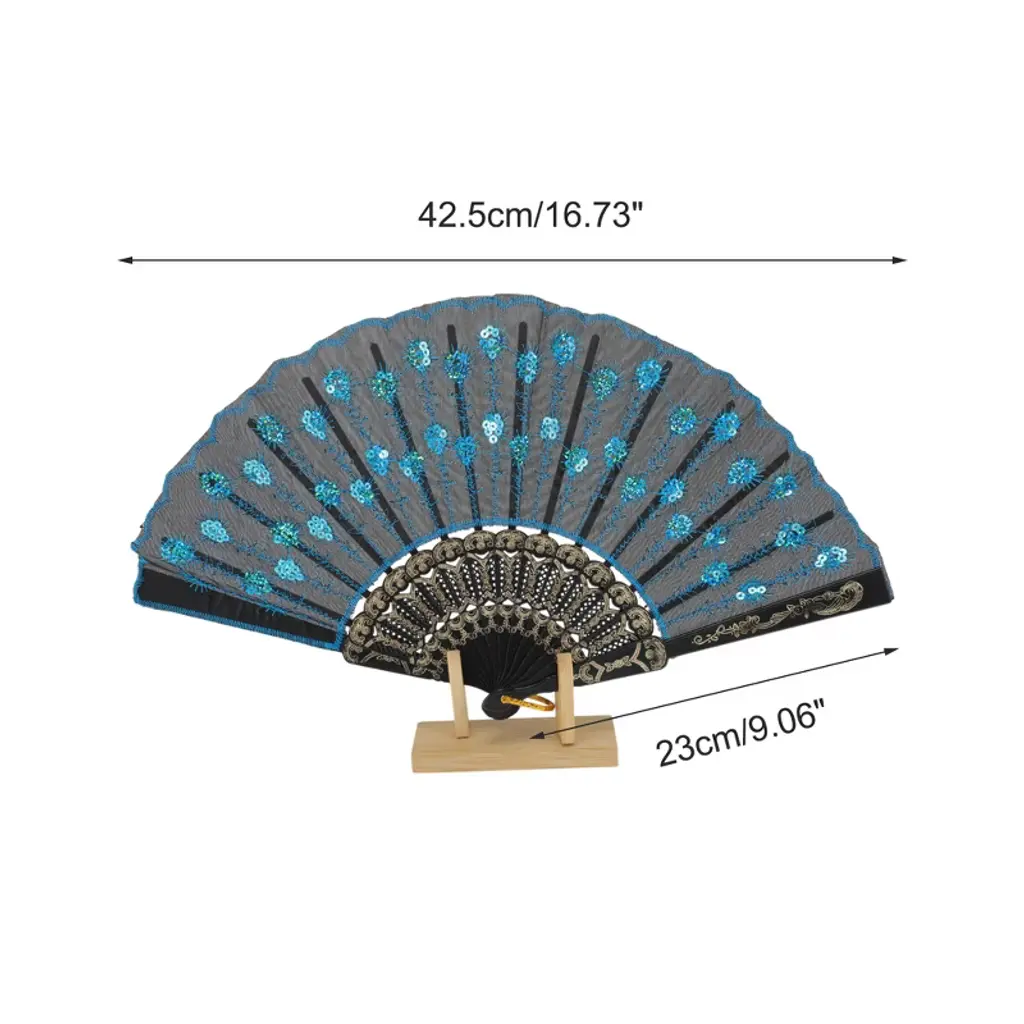 Unique Bargains Sequins Folding Fan Brigth Blue 1 Pc
