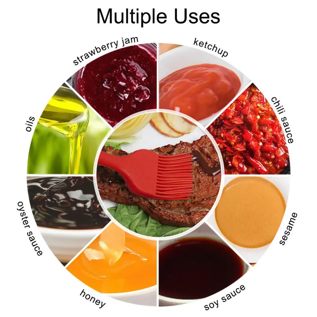 These silicone brushes are versatile tools for cooking, baking, and barbecuing. They are perfect for applying oil, butter, and marinades evenly across various foods such as BBQ meat, cakes, and pastries. The flexible bristles glide smoothly over surfaces without damaging the food or scratching your cookware. Each brush features a long handle to keep your hands safe from heat, and they are available in different colors to help you designate specific uses. Easy to clean, these brushes are dishwasher safe and dry quickly without shedding bristles or retaining grease. A handy hanging hole allows for convenient storage, saving space in your kitchen.