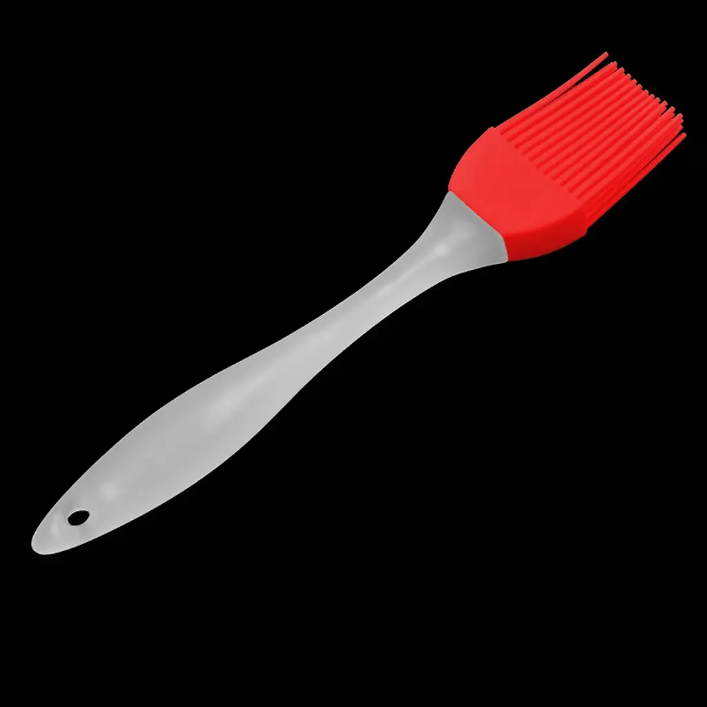 This basting brush is an excellent tool for outdoor cooking, barbecues, and baked goods. It features a plastic handle with a hole at the end, making it convenient to hang on the wall. The brush is made from silicone and plastic, providing a quick and effortless coating action without the hassle of nylon bristles in your food. It is designed to be easy to use, with smooth edges that won't scratch non-stick pans, and it's perfect for spreading oils on meat on a hot grill. The silicone material ensures easy cleaning, whether by hand washing or in the dishwasher, and it dries quickly without staining. The soft and flexible bristles effectively baste and spread liquids evenly, making it ideal for meats, pastries, cakes, desserts, and more.