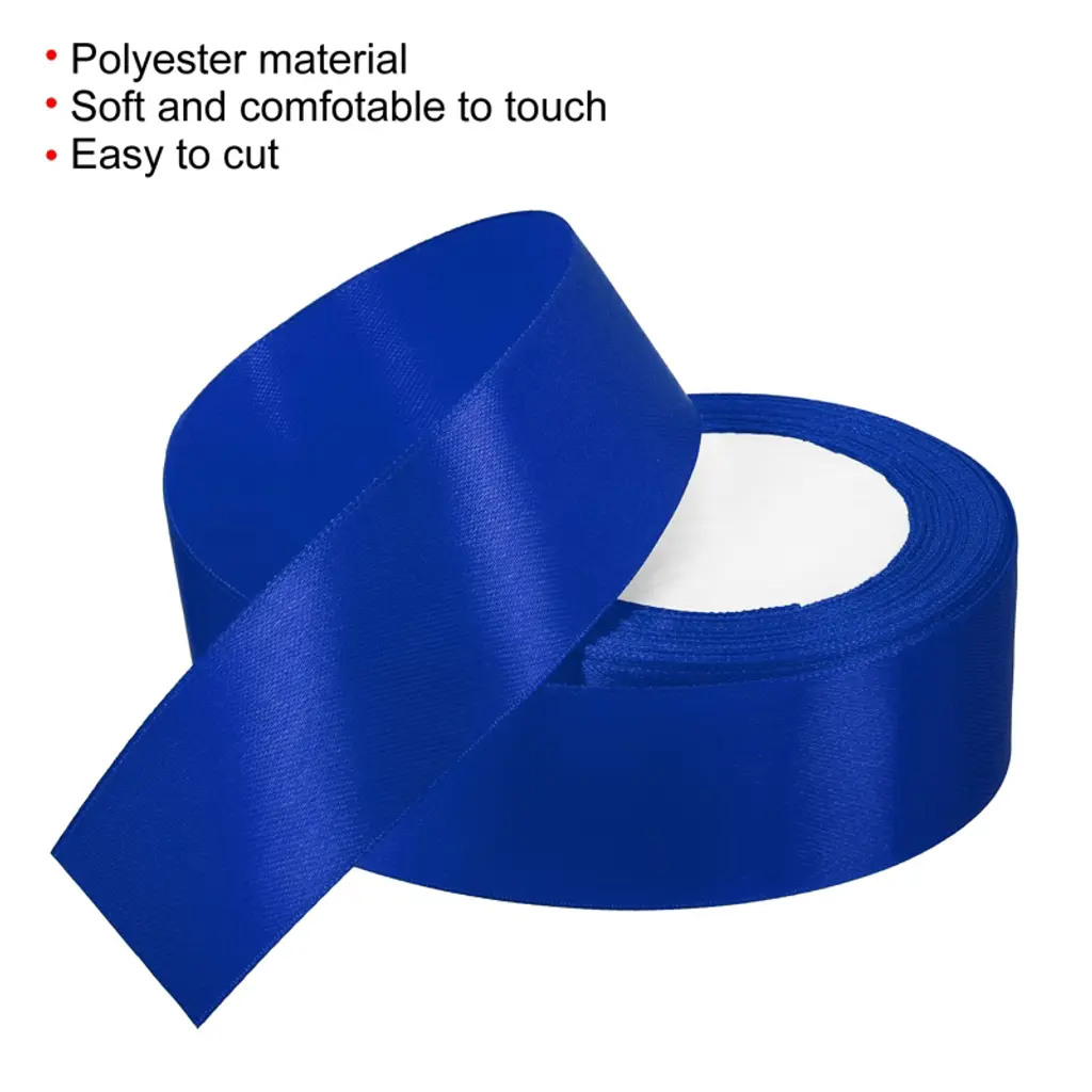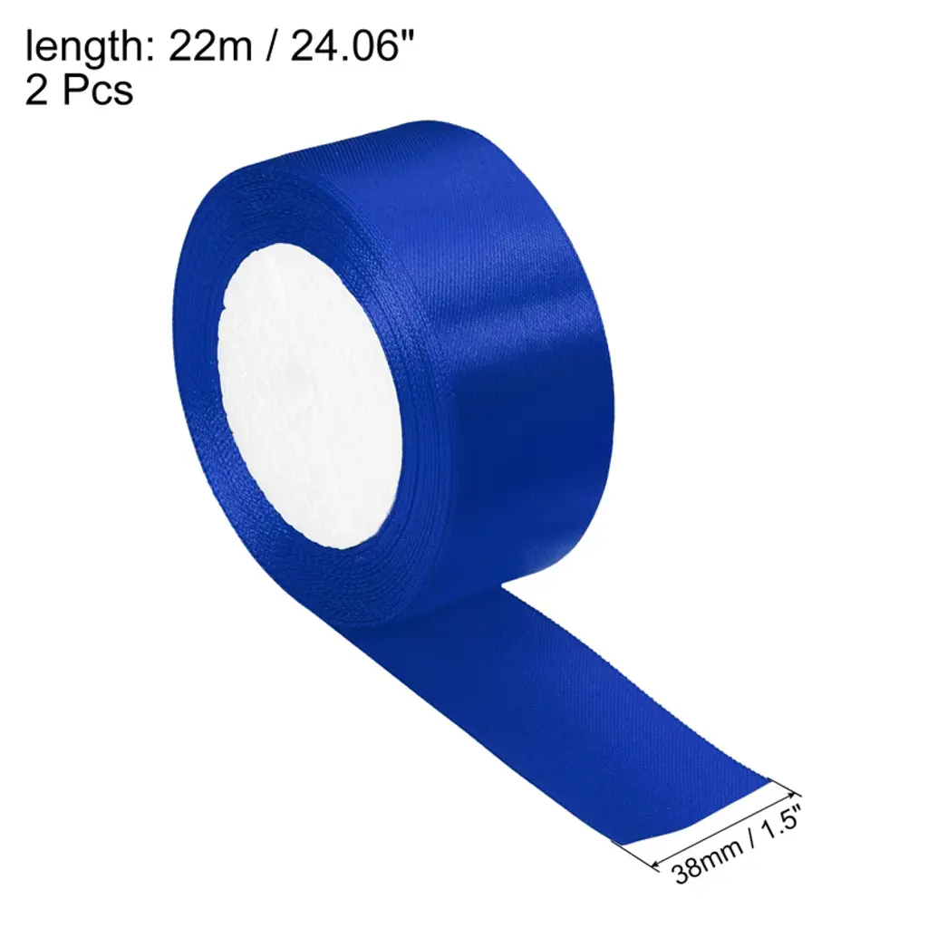 Unique Bargains Single Side Solid Diy Wrapping Decoration Roll Satin Ribbons 2 Pcs Blue