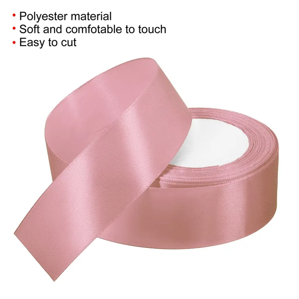 Unique Bargains Single Side Solid Diy Wrapping Decoration Roll Satin Ribbons 2 Pcs Bright Pink