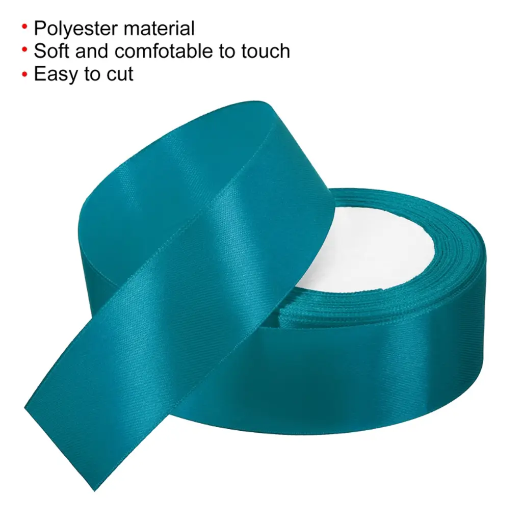 Unique Bargains Single Side Solid Diy Wrapping Decoration Roll Satin Ribbons Bright Blue