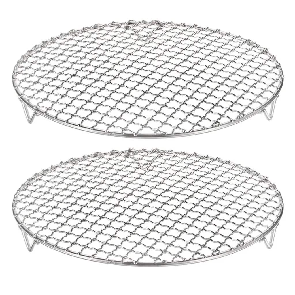 The round cooling rack is made of stainless steel, which is not easy to fall off, preventing the rack from warping. The sturdy legs can hold heavier food, making it suitable for your daily use. The round wire rack features raised feet that hold food stably and prevent it from falling. The spaced wires provide better airflow and faster cooling for baking or steaming. This round cooking grid grill is suitable for air fryers, pots, pressure cookers, and ovens and can be used to steam bake or cool bread, cookies, cupcakes, pizza, or anything you need.