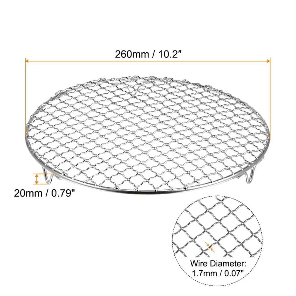 Unique Bargains Stainless Steel Round Cross Wire Barbecue Grill With Legs 10.2 Inch 0.07" 1 Pc
