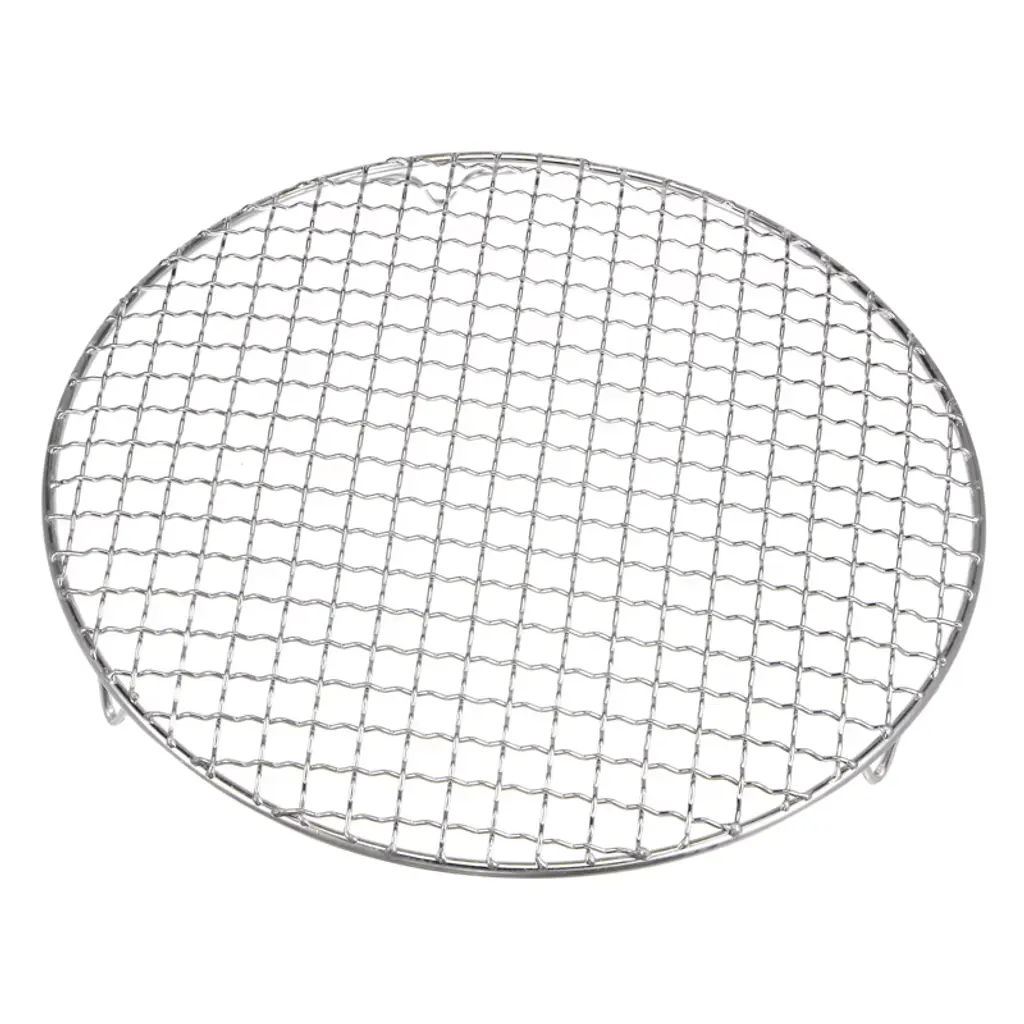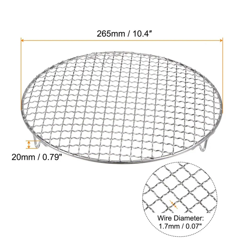 Unique Bargains Stainless Steel Round Cross Wire Barbecue Grill With Legs 10.4 Inch 0.07" 1 Pc