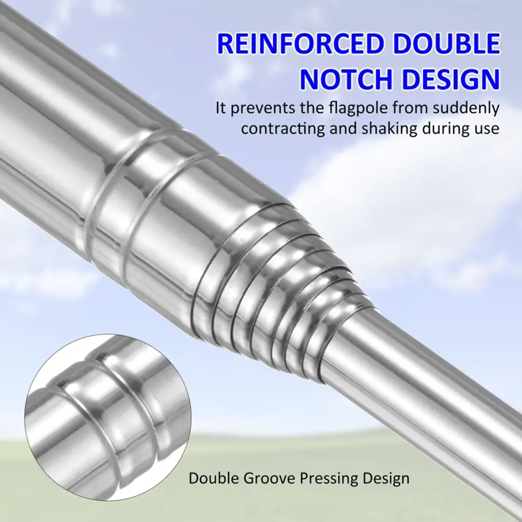 Unique Bargains Stainless Steel Telescopic Handheld Anti-slip Grip Flag Pole 8.2 Feet 1 Pc