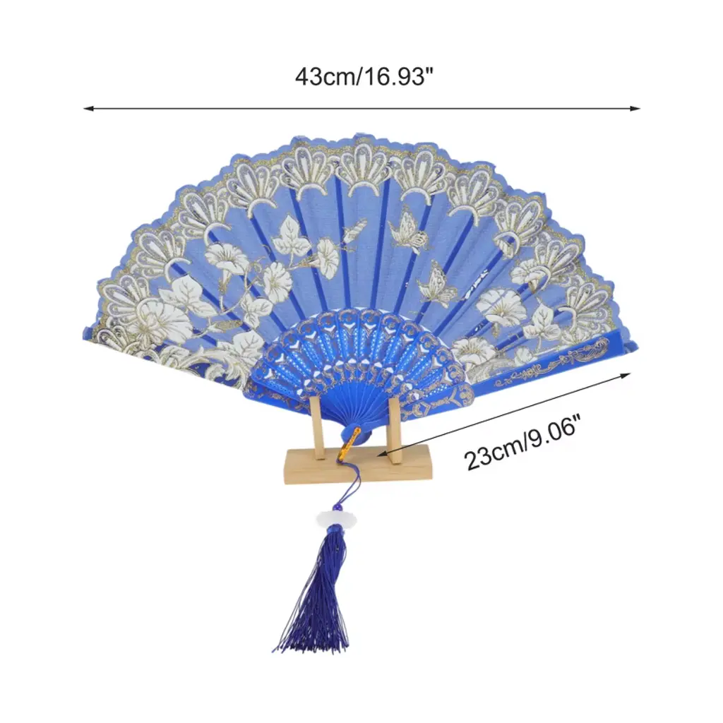 Item Function: 1. The folding fan is made of good quality silk fabric, a sturdy and durable product to give you a smooth opening and folding experience. 2. It can be drive away heat for you in scorching summer days and add a pop of color to your costume as a decoration.3. This hand fan can be widely seen at the wedding, masquerade, Halloween, dancing party or other activities, also can be applied as adornments, such as photo prop, part decoration, festival decoration, photography backdrop, clothing ornament and so on.4. These fans are great gifts for various parties, such as weddings, anniversaries, ceremonies, dancing performance. Also, it's suitable for home DIY decorating. Specifications: Product Name: Folding Fan, Material: Silk Fabric, Closed Length: 23cm / 9.06", Opened Length: 43cm / 16.93", Package List: 1 Piece Folding Fan.