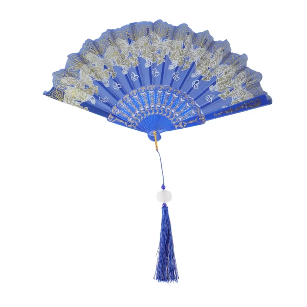 Unique Bargains Tassel Folding Fan Blue 1 Pc
