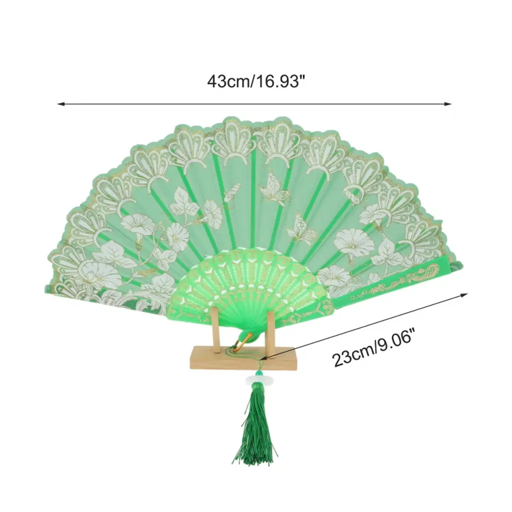 Unique Bargains Tassel Folding Fan Green 1 Pc