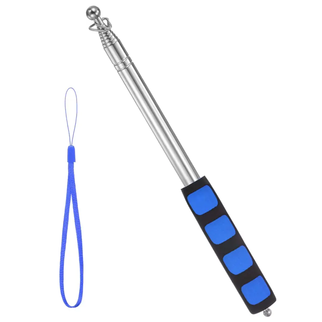 Unique Bargains Telescopic Handheld Stainless Steel Anti-slip Grip Flag Pole 1 Pc Blue