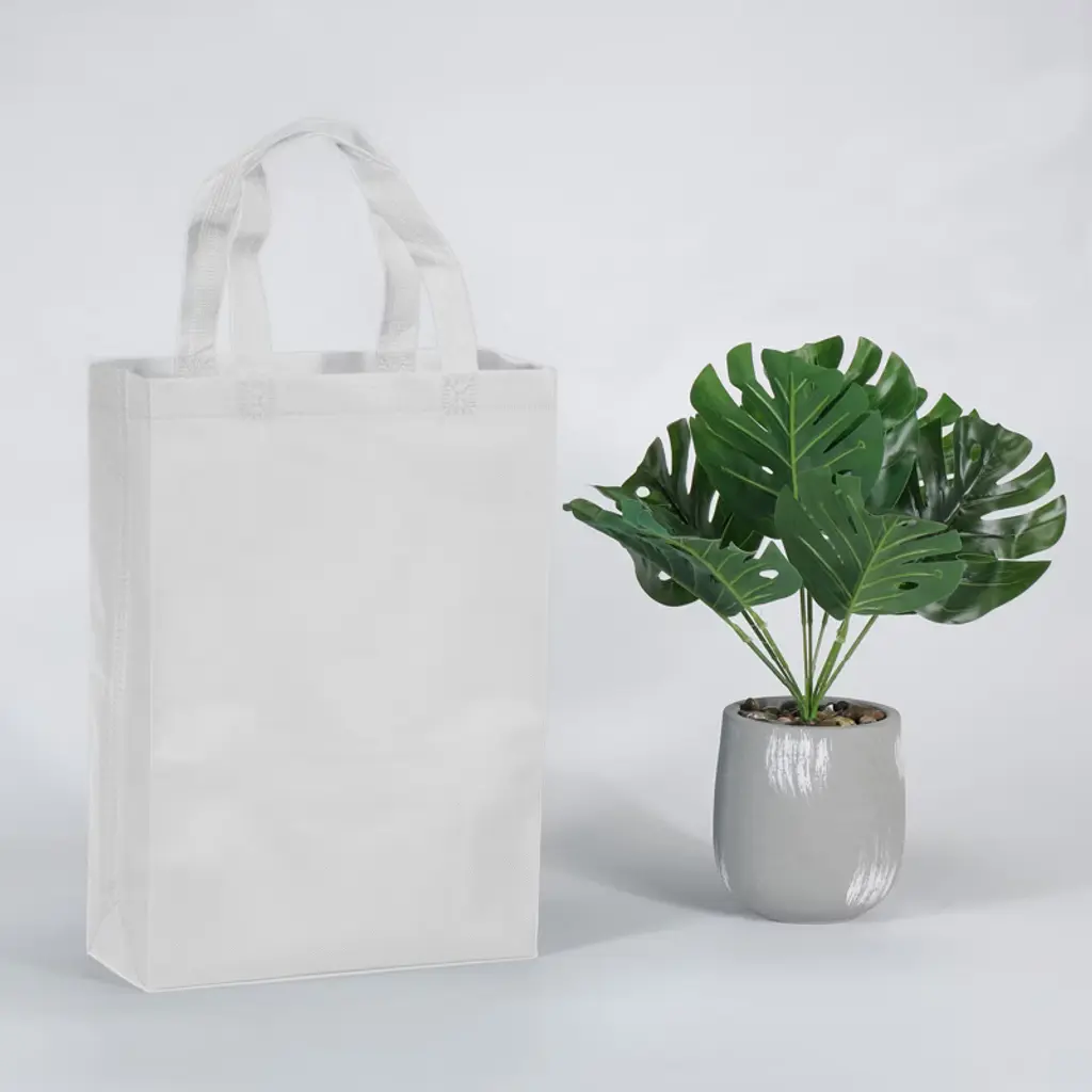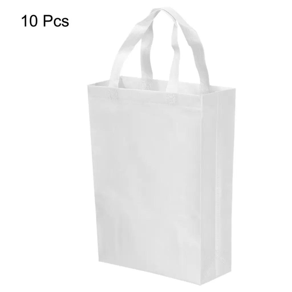Unique Bargains Vertical Style Non-woven Travel Storage Grocery Tote Bag 10 Pcs White