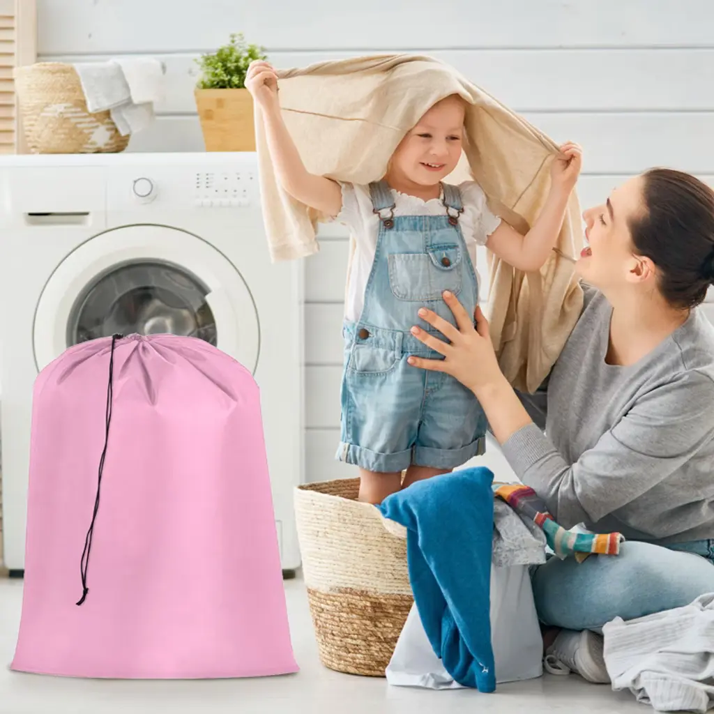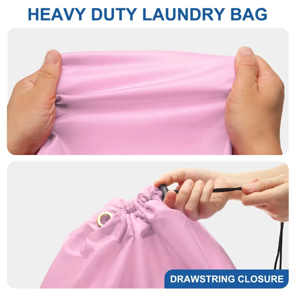 Made of high-density polyester material with double-stitched seam construction, resistant to tear or wear, not easy to fade or break, sturdy and durable. The drawstring closure prevents the spill of inside items during transportation. The laundry hamper keeps clothes clean and fresh. Machine washable and easy to clean, organize dirty clothes, and maximize your room utilization. Take out the laundry bag to put clothes into the washing machine. Great for holding dirty clothes, quilts, blankets, pillows, towels, sports gear, beach items, etc. The laundry bags are suitable for travel or camping.