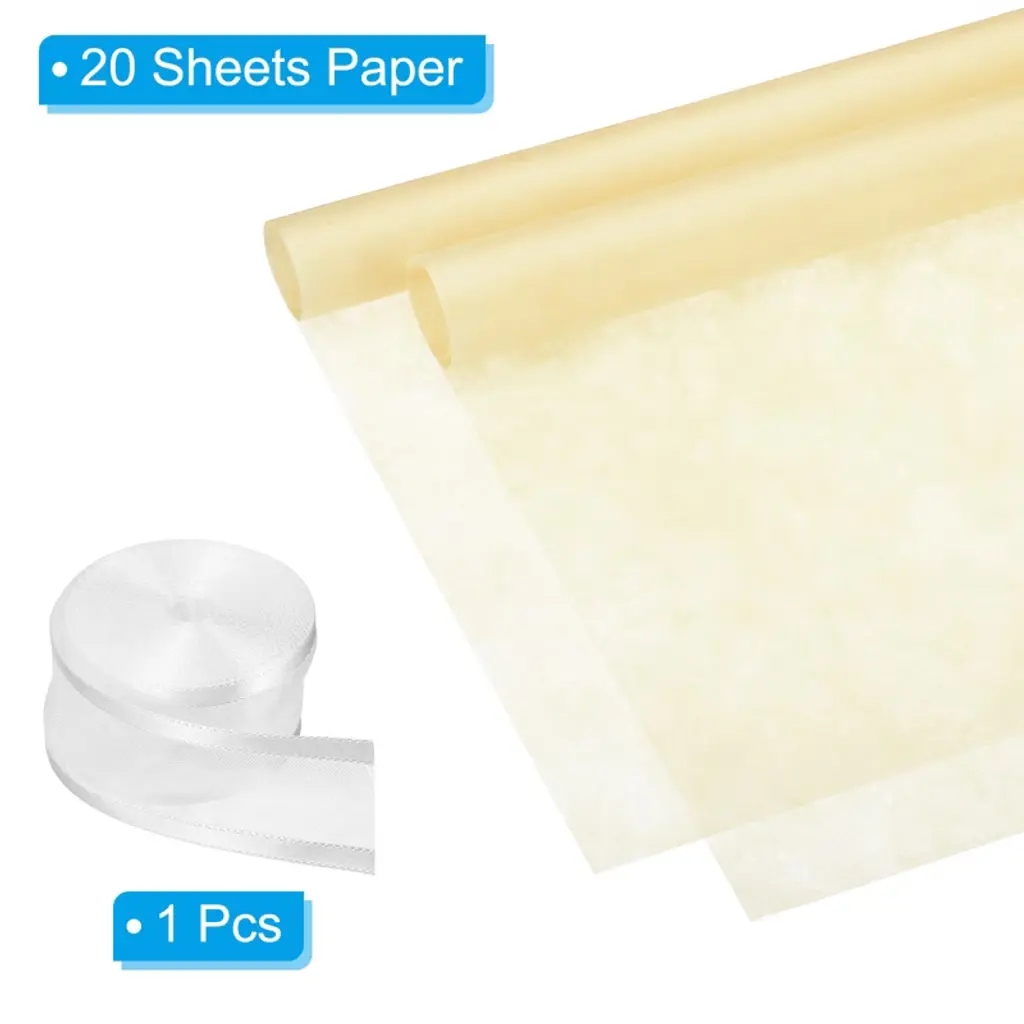Unique Bargains Waterproof Non-woven Fabrics Decorative Gift Wrap Paper With Ribbon 1 Set Beige
