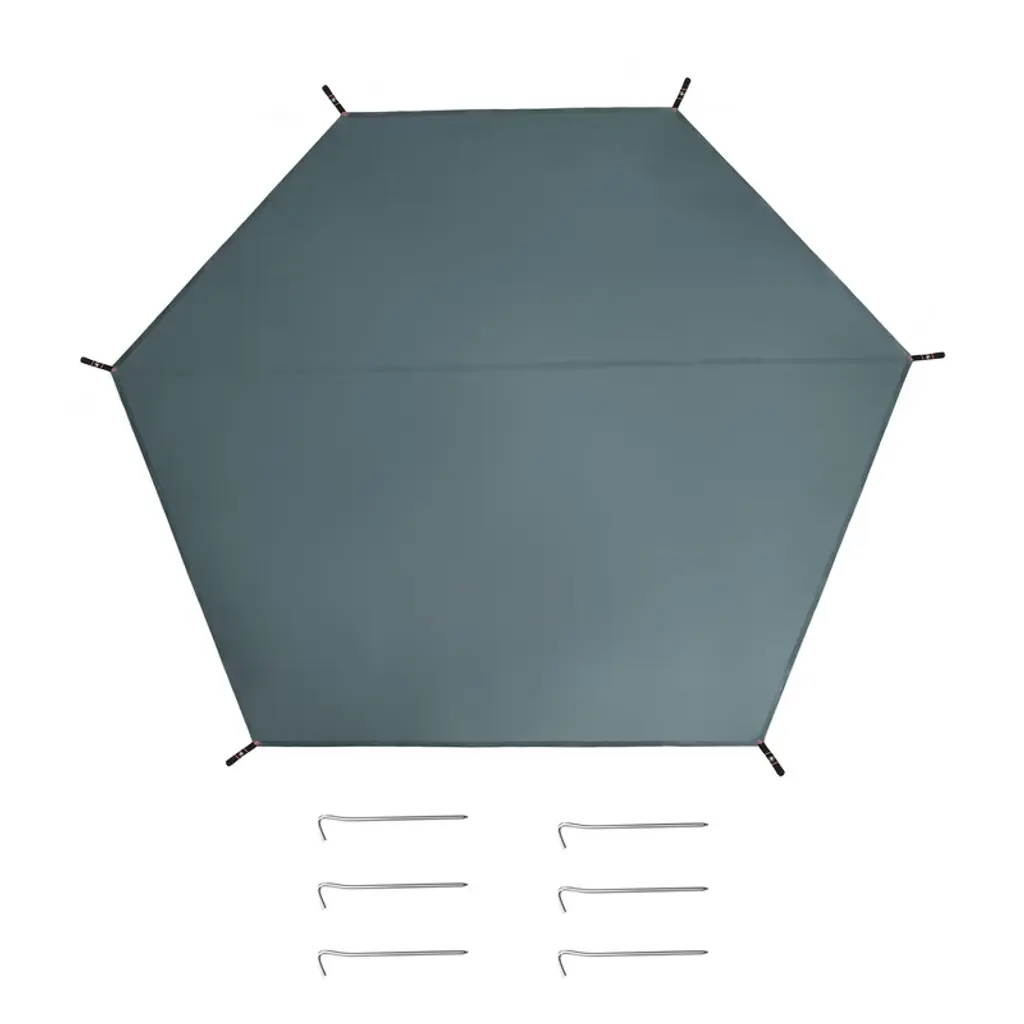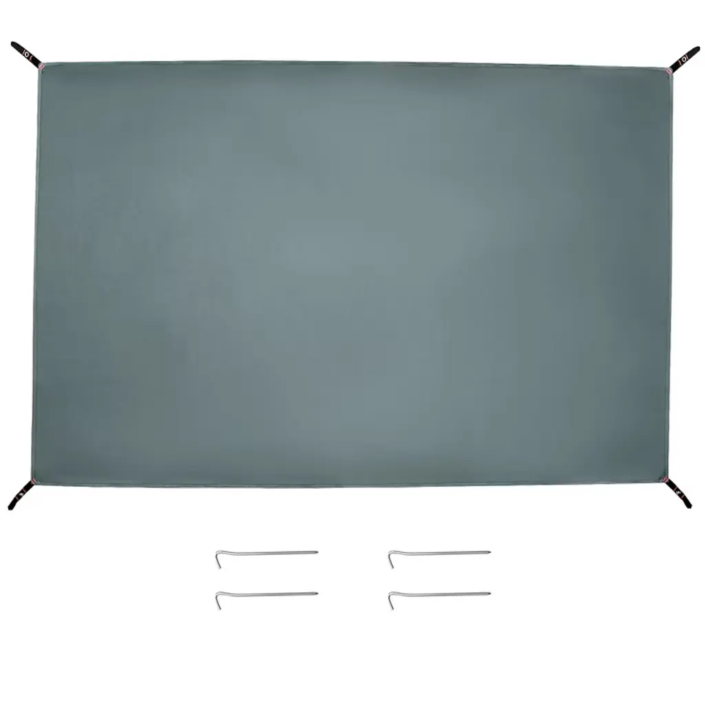 Item Function: 1. Made of Oxford quality material, durable, which can protects the bottom for your tent from abrasions, extend your tent lifespan. 2. It is easy to use. Just unfold the tarp, and use the tent stake to nail it on the ground through the metal grommet eyelets. 3. With a drawstring carry bag for easy storage, a good equipment for camping hiking backpacking picnic. 4. It can also be used as a picnic mat, ground cloth, hammock rain fly, sunshade shelter, waterproof layer, canopy cover, rain awning, and survival gear. Specifications: Color: Gray; Material: Oxford 210D, PU Coating; Weight: 480g; Water Resistant: 2000mm; Hole Diameter: 8mm / 0.31"; Package List: 1 Pc Tent Tarp, 6 Pcs Ground Nails.