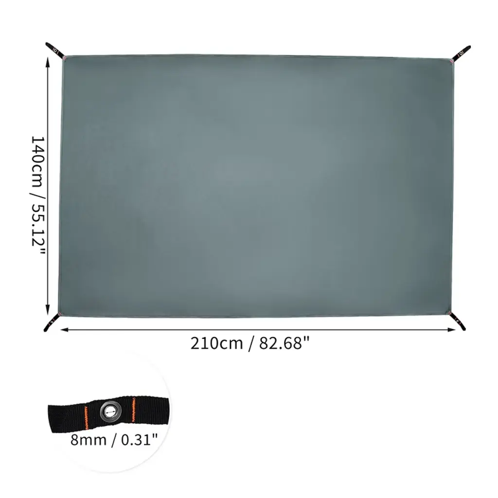 Item Function: 1. Made of Oxford quality material, durable, which can protects the bottom for your tent from abrasions, extend your tent lifespan. 2. It is easy to use. Just unfold the tarp, and use the tent stake to nail it on the ground through the metal grommet eyelets. 3. With a drawstring carry bag for easy storage, a good equipment for camping hiking backpacking picnic. 4. It can also be used as a picnic mat, ground cloth, hammock rain fly, sunshade shelter, waterproof layer, canopy cover, rain awning, and survival gear. Specifications: Color: Gray; Material: Oxford 210D, PU Coating; Weight: 220g; Water Resistant: 2000mm; Hole Diameter: 8mm / 0.31"; Package List: 1 Pc Tent Tarp, 4 Pcs Ground Nails.