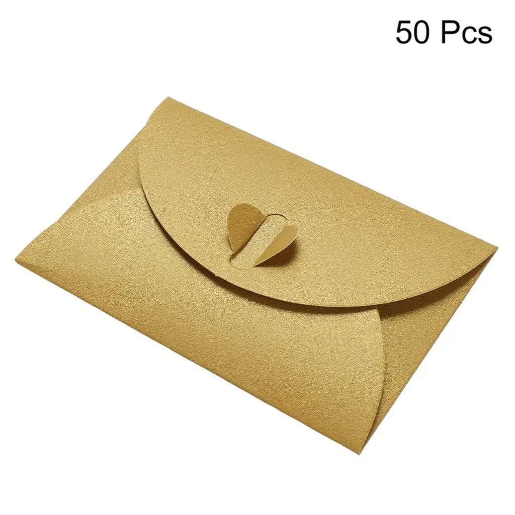 Unique Bargains Wedding Greeting Party Mini Envelopes Heart Clasp Cute Present Card Holder 50 Pcs Golden