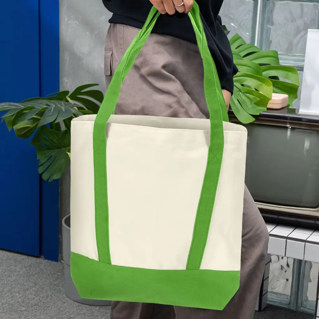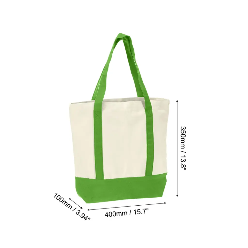 Unique Bargains Zipper Reusable Canvas Tote Bag With Internal And External Pockets Green
